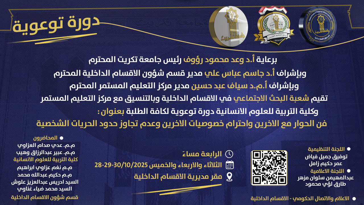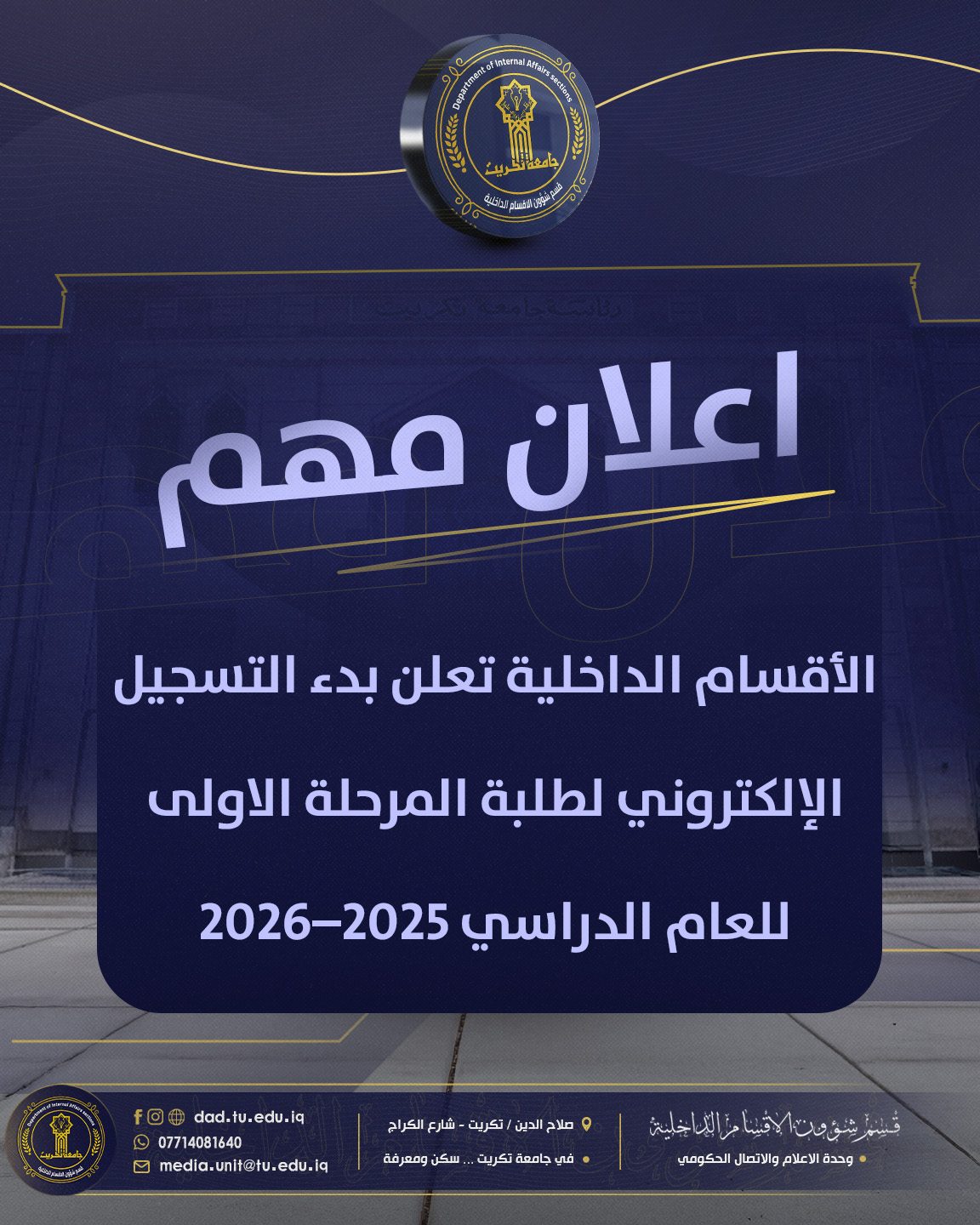 المنصة الرسمية للأقسام الداخلية بجامعة تكريت عبر يوتيوب