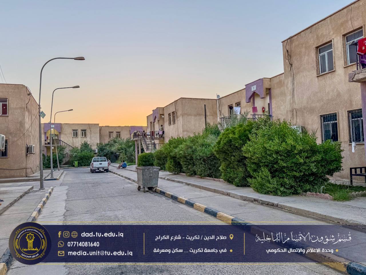 تأسست الأقسام الداخلية مع بدء تأسيس جامعة تكريت في ٢٣-١٢-١٩٨٧ عندما كانت الجامعة تتكون فقط من كلية التربية للبنات ثم في عام ١٩٨٨ كلية الهندسة ثم في عام ١٩٨٩ كلية الطب، وكان مقر الجامعة في كلية التربية للبنات حالياً وكان لكل كلية قسمان داخليان أحدهما للطلاب والآخر للطالبات فكانت أقسام كلية التربية للبنات في عمارة الحاج إبراهيم الترنبول، وأما أقسام طالبات الطبية في عمارة الحاج معاد المحامي في شارع الأربعين مجاور عمارة الترنبول، وأما أقسام طالبات الهندسة فكانت في نفس الكلية الواقعة في قضاء بيجي مجاور معمل الزيوت النباتية ،أما بالنسبة للطلاب فكانت أقسامهم كالآتي: أقسام كلية التربية للطلاب في عمارة أركان الكميت، وأقسام طلاب الطبية في عمارة التأمين على الحياة، وطلاب كلية الهندسة في عمارة داخل بيجي، بعدها أخذت الكليات بالتوسع فاستحدثت كلية الزراعة وكلية التربية المختلطة (الإدارة والاقتصاد) وعودة كلية الهندسة إلى تكريت فكان للأقسام الداخلية نصيبها في التوسع وتم استئجار العديد من العمارات واستغلالها كأقسام داخلية للطلاب والطالبات، وفي سنة ٢٠٠٣ تم إخلاء الكثير من تلك العمارات لصغر حجمها وكثرة صيانتها، أما إدارة تلك الأقسام فكانت لامركزية إذ أن كل كلية كانت تدير أقسامها بواسطة وحدة تسمى وحدة الأقسام الداخلية ويتم الإشراف عليها من قبل عميد الكلية، أما في سنة ٢٠٠٤ فأصبحت الأقسام الداخلية تدار مركزياً بإدارة تسمى مديرية الأقسام الداخلية التي كان مقرها في المركز الثقافي، وكان أول مدير للأقسام الداخلية هو الدكتور واثق عمر موسى وبعده الأستاذ ناظر أحمد منديل ... انتهاءً بالدكتور (جاسم عباس علي)، ومقر الأقسام الداخلية يقع حاليا في حي القادسية الواقعة خلف الكراج الموحد ،أما الأقسام الداخلية فان عددها قد وصل الى (١٤) قسم داخلي بعد إن كان عددها ٦ أقسام تستقبل سنوياً بما يقارب ١٠ الاف طالب موزعين على مجمعات الأقسام الداخلية المتعددة.