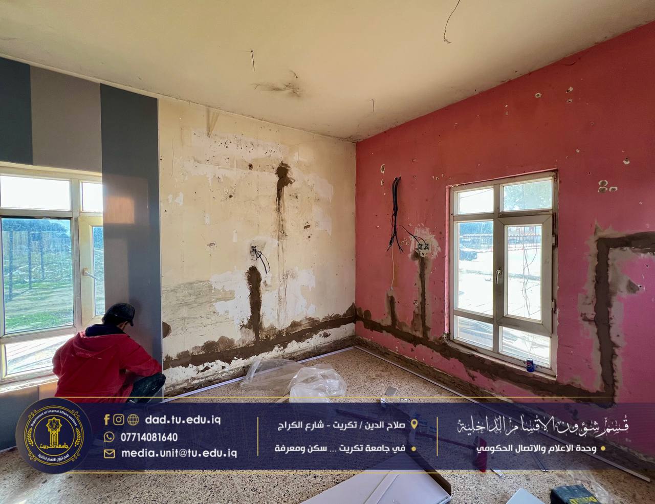 انطلقت في مجمع الطالبات المركزي حملة تأهيل وصيانة كبيرة، تنفذها شعبة الصيانة والخدمات في قسم شؤون الأقسام الداخلية، وبمتابعة مباشرة من الأستاذ الدكتور جاسم عباس علي مدير الأقسام الداخلية، وبإشراف مباشر من مسؤول شعبة الصيانة والخدمات السيد همام نزهان محمد.
