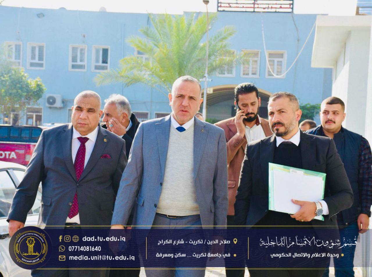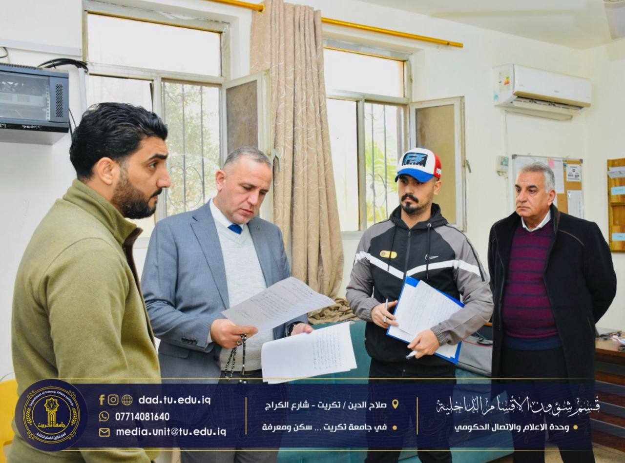 وكان في استقبال اللجنة الأستاذ الدكتور جاسم عباس علي مدير قسم شؤون الأقسام الداخلية في جامعة تكريت، والأستاذ المساعد الدكتور طه غافل عبدالله معاون مدير قسم شؤون الأقسام الداخلية لشؤون الطلاب، إلى جانب عدد من مسؤولي الشعب والوحدات الإدارية.