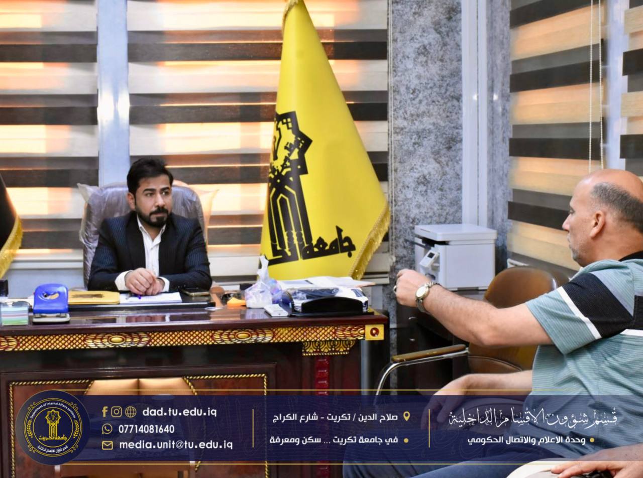عقد معاون مدير قسم شؤون الأقسام الداخلية لشؤون الطلبة، المدرس الدكتور عزيز حسن صالح اجتماعاً مع السادة أمناء المجمعات والأقسام، جرى خلاله بحث ومتابعة تنفيذ خطة السكن للعام الدراسي الحالي، والاطلاع على أبرز احتياجات الطلبة داخل المجمعات السكنية.