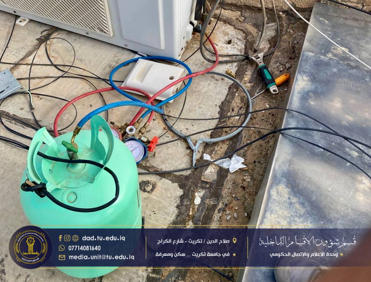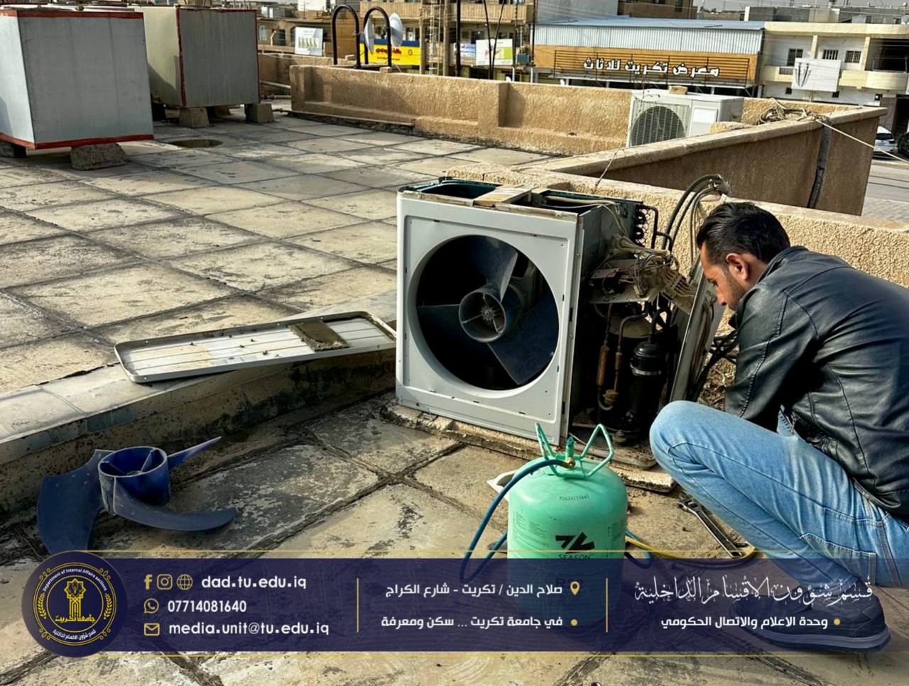 وأكد مسؤول وحدة التكييف، السيد -سالم محمد حسين- أن كوادر الوحدة تواصل عملها بشكل متواصل خلال أوقات الدوام الرسمي وخارجه، من أجل صيانة وإدامة أجهزة التكييف في المجمعات السكنية كافة، وبما يسهم في توفير أجواء مناسبة ومريحة للطلبة، لاسيما مع انخفاض درجات الحرارة.
