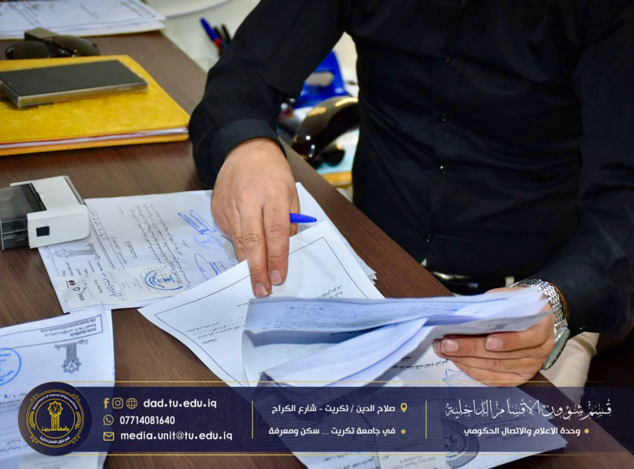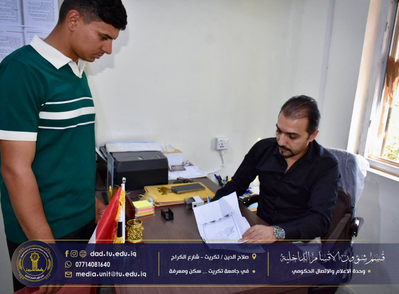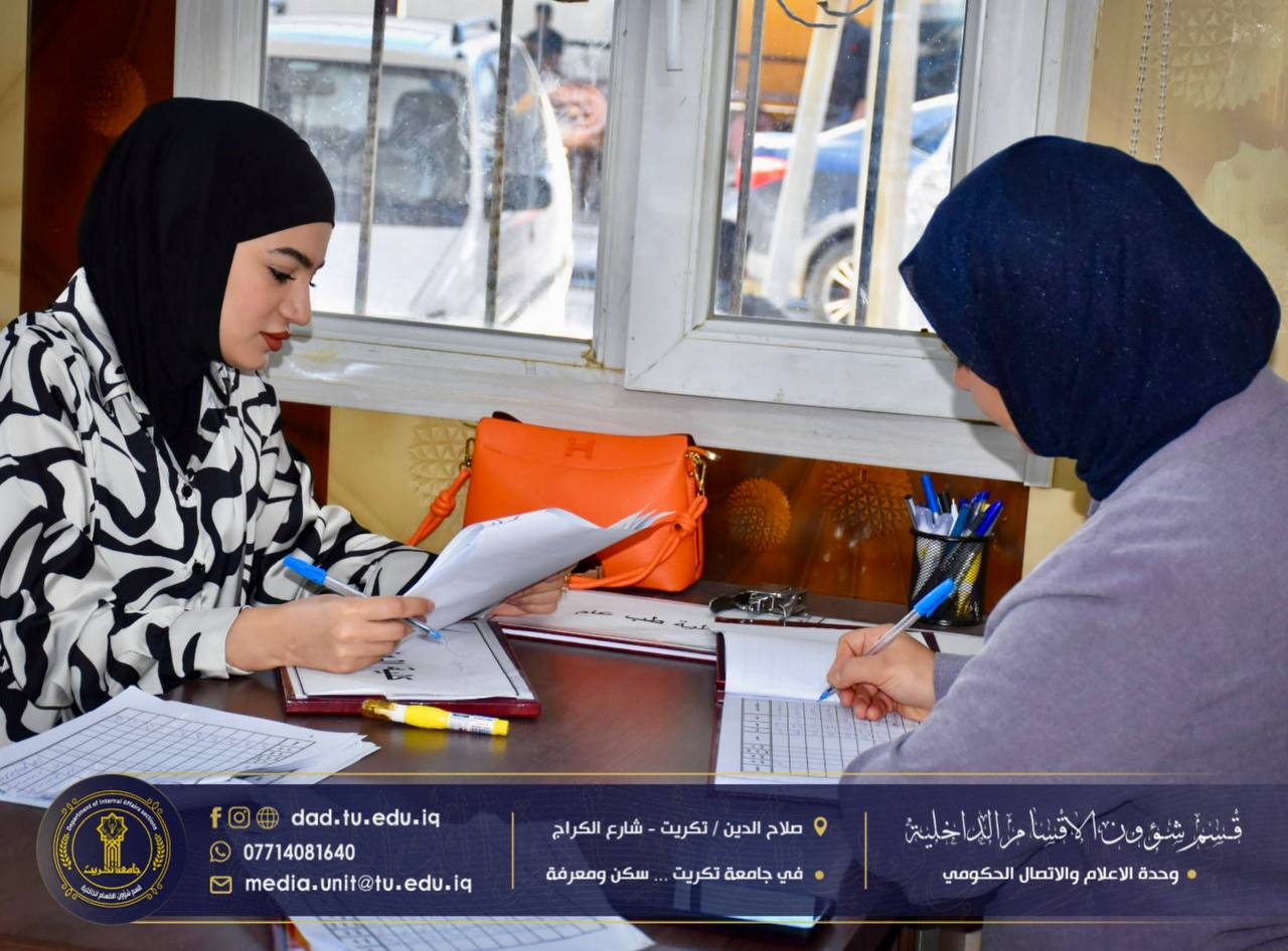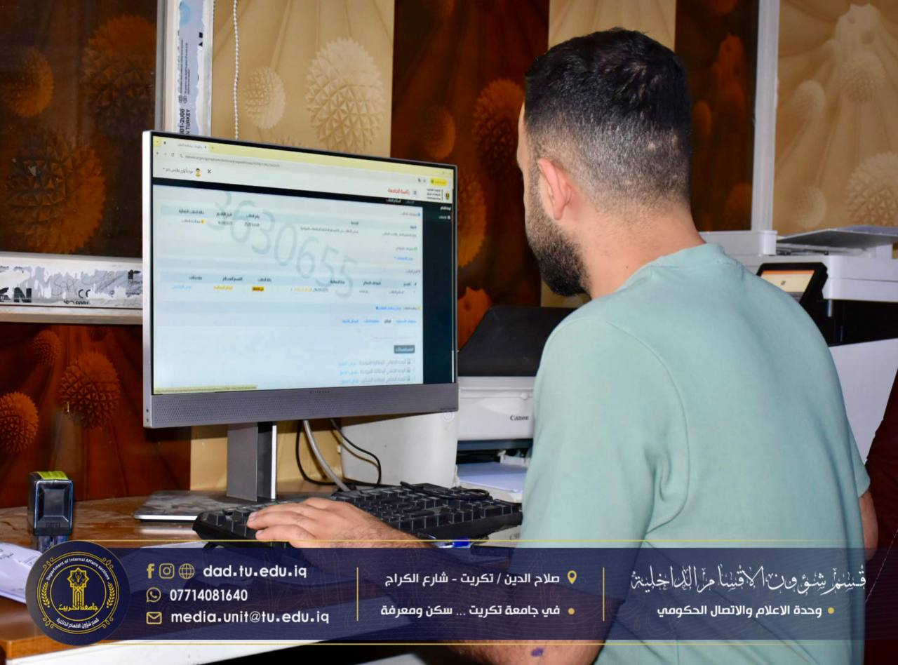 بمتابعة مباشرة من مدير قسم شؤون الأقسام الداخلية أ.د. جاسم عباس علي، تواصل شعبة الإسكان وبالتنسيق مع الوحدة القانونية أعمالها في استقبال الطلبة الجدد واستكمال إجراءات التسجيل للسكن في المجمعات الطلابية.