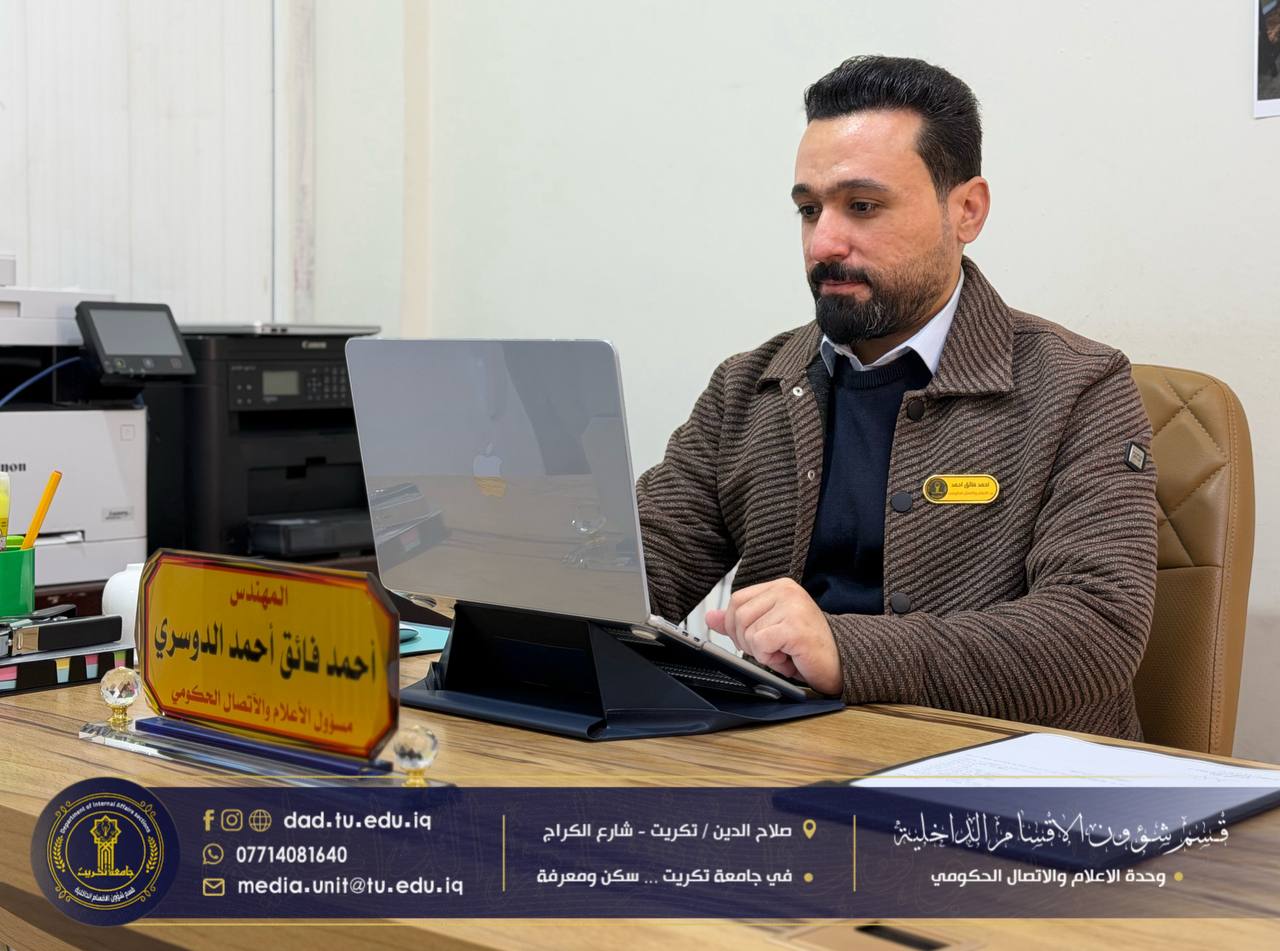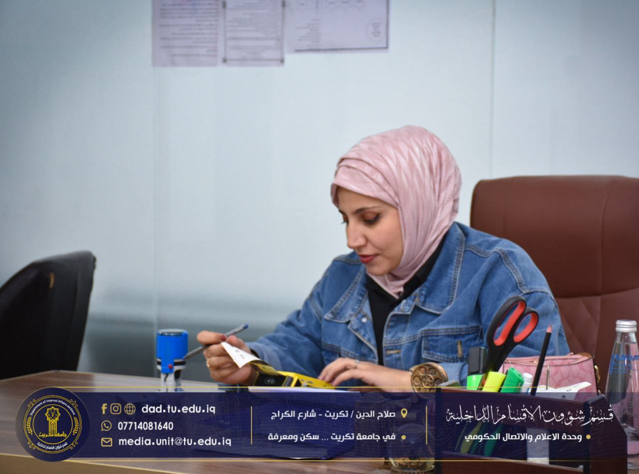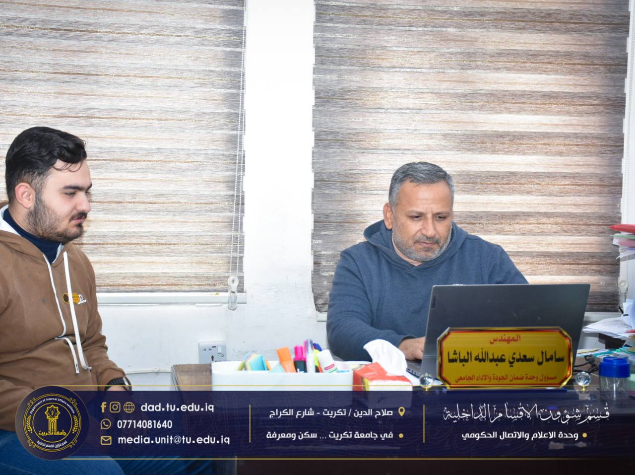 وشملت الجولة الاطلاع على آلية سير العمل اليومي، ومتابعة الالتزام بالضوابط والتعليمات الإدارية، فضلاً عن الوقوف على احتياجات الشعب والوحدات والمعوقات التي قد تواجه أداء مهامها، والعمل على معالجتها بما ينسجم مع توجيهات رئاسة الجامعة وخطط القسم المعتمدة.
