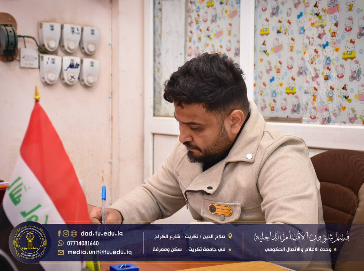 أجرى كادر الإعلام في قسم شؤون الأقسام الداخلية جولة صباحية لمتابعة الواقع الإداري في الشعب والوحدات التابعة للقسم، وذلك ضمن إطار الحرص على تعزيز الأداء المؤسسي والارتقاء بمستوى العمل الإداري والخدمي.