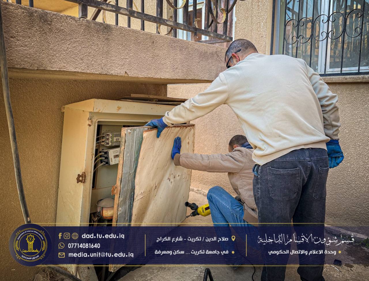 تواصل كوادر شعبة الصيانة والخدمات في قسم شؤون الأقسام الداخلية حملتها الواسعة لأعمال التأهيل والصيانة في مجمع القادسية الطلابي، وذلك بمتابعة مباشرة من الاستاذ الدكتور جاسم عباس علي مدير قسم شؤون الأقسام الداخلية وضمن الخطة المعدّة للارتقاء بالواقع الخدمي وتحسين البيئة السكنية للطلبة.