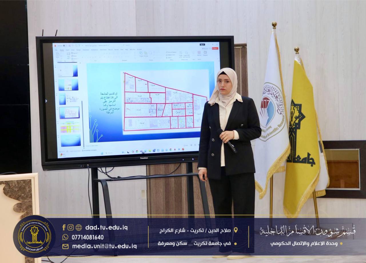 برعاية الأستاذ الدكتور وعد محمود رؤوف رئيس جامعة تكريت، وبتوجيه من الأستاذ الدكتور جاسم عباس علي مدير قسم شؤون الأقسام الداخلية، شارك كلٌّ من السيد سامال سعدي عبدالله مدير وحدة ضمان الجودة والأداء الجامعي، والسيد أحمد فائق أحمد مدير وحدة الإعلام والاتصال الحكومي، في الورشة العلمية الموسومة “ترميز بنايات الجامعة” التي أُقيمت على قاعة الخوارزمي.