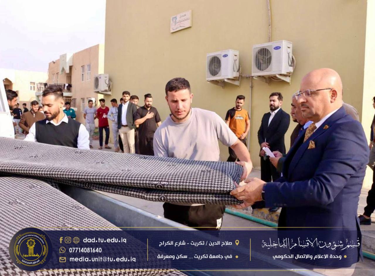 ضمن إطار تعزيز التعاون المشترك بين تشكيلات جامعة تكريت، وبالتنسيق المباشر مع قسم شؤون الأقسام الداخلية، قامت كلية التربية للعلوم الإنسانية بتجهيز شقق طلبتها في مجمع الأقواس بالمفروشات الأرضية “الكاربد”، وذلك بهدف توفير بيئة سكنية مريحة وملائمة للطلبة خلال العام الدراسي.