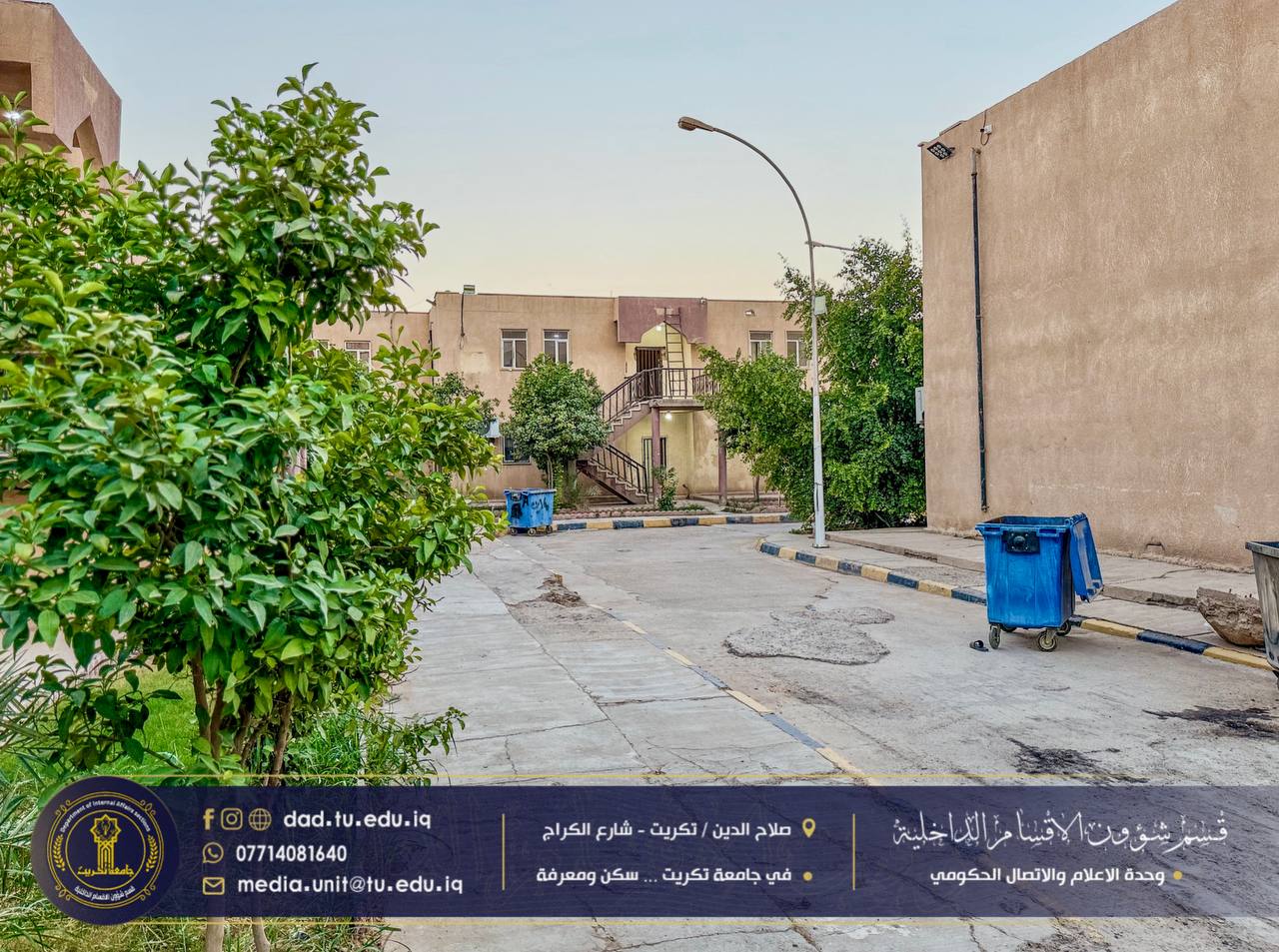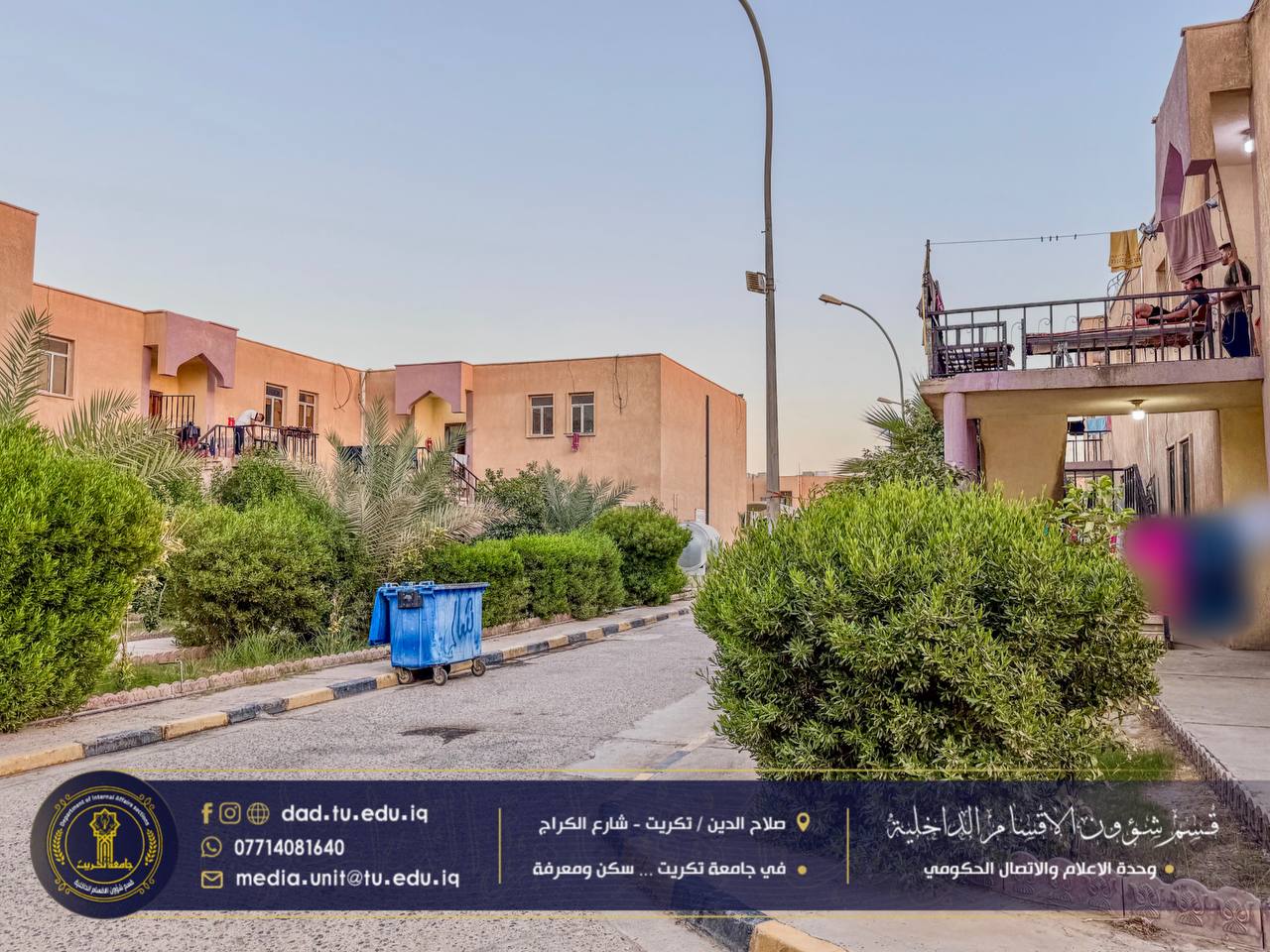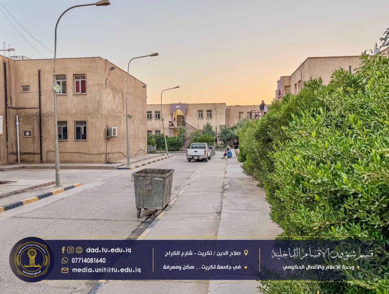 أجرى الإعلام والاتصال الحكومي في الأقسام الداخلية جولة مسائية تفقدية في حدائق وأروقة مجمع القادسية، للاطلاع على مستوى النظافة وجمالية المساحات الخضراء ومتابعة جهود الكوادر الخدمية في تهيئة بيئة سكنية مريحة للطلبة.