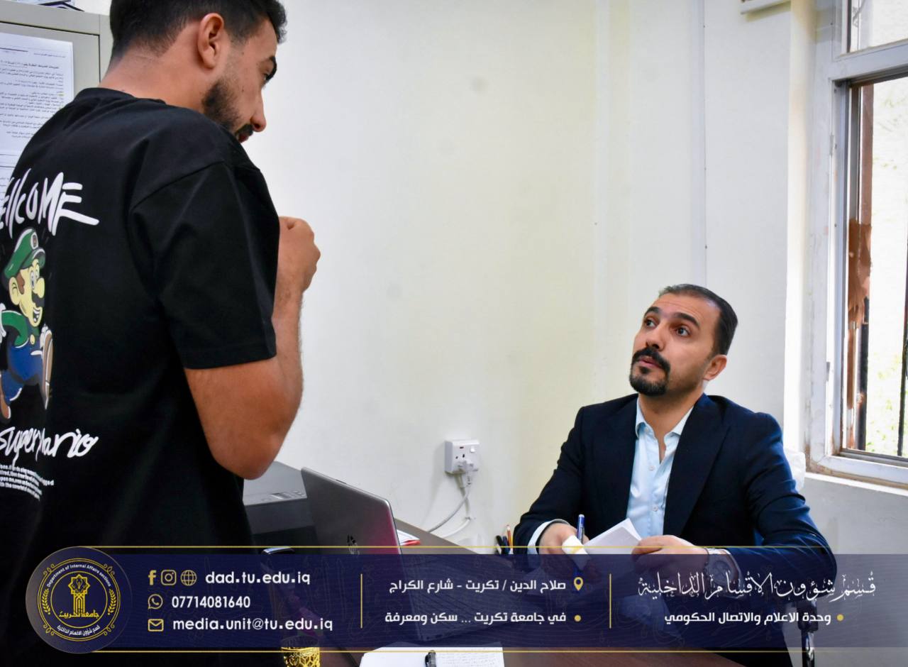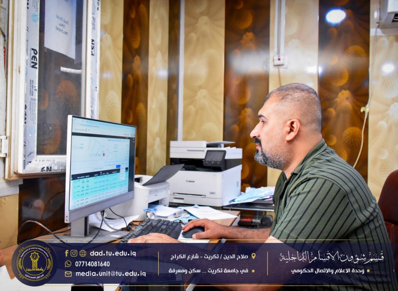 وأكد مدير القسم أن العمل يجري وفق خطة أُعدّت مسبقاً لتسهيل استقبال الطلبة وتذليل العقبات أمامهم، مشيداً بجهود الكوادر العاملة في الشعب المختلفة التي تواصل مهامها يومياً لضمان إنجاز التسجيل بالوقت المحدد، وبما ينسجم مع توجيهات وزارة التعليم العالي والبحث العلمي وجامعة تكريت في تنظيم السكن الجامعي وفق أعلى المعايير الإدارية والخدمية.