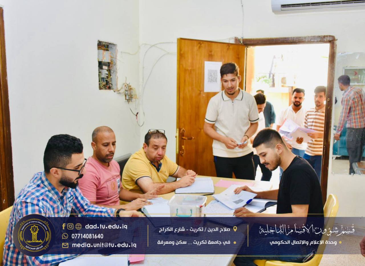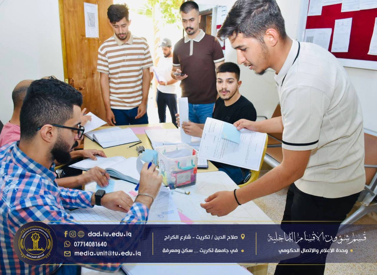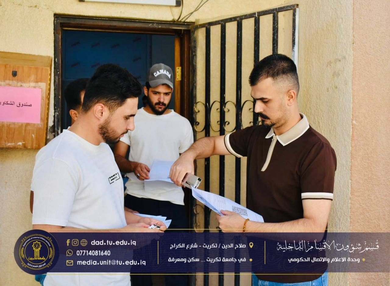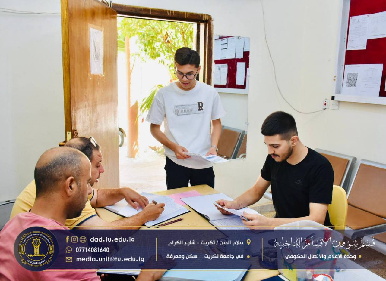 تنفيذاً لتوجيهات الأستاذ الدكتور وعد محمود رؤوف رئيس جامعة تكريت، وبإشراف مباشر من الأستاذ الدكتور جاسم عباس علي مدير قسم شؤون الأقسام الداخلية، تواصل كوادر شعبة الإسكان وأمناء مجمع القادسية متابعة إجراءات تسجيل وإسكان طلبة الدراسات الأولية للعام الدراسي (2025 – 2026).