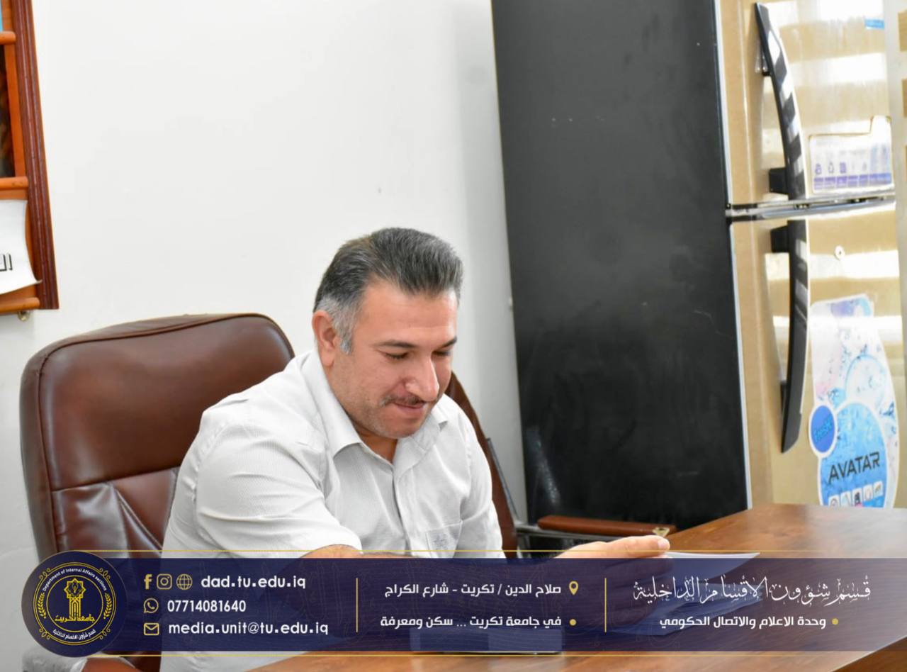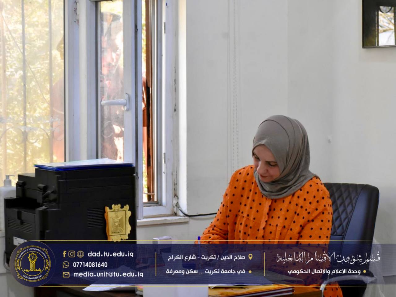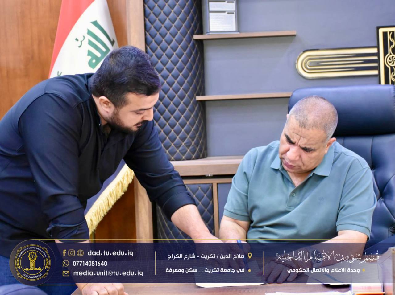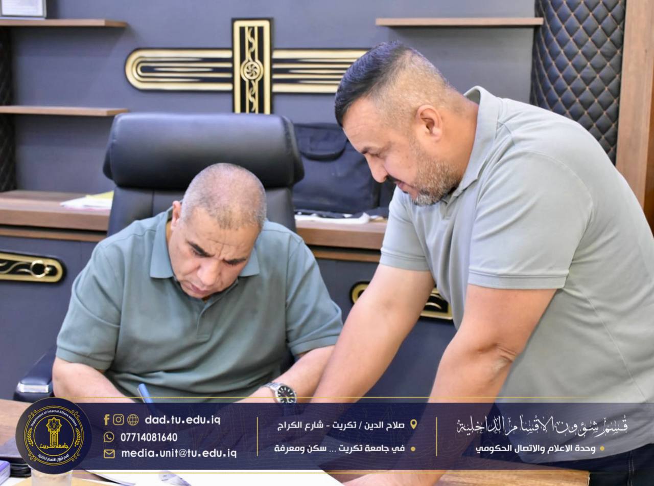 ضمن إطار المتابعة الميدانية المستمرة لسير العمل الإداري، تابع مدير قسم شؤون الأقسام الداخلية في جامعة تكريت الأستاذ الدكتور جاسم عباس علي أعمال الشعب والوحدات الإدارية في القسم، واطلع على آلية إنجاز الكتب الرسمية وتنظيم الأرشفة الورقية والإلكترونية، فضلاً عن متابعة الإحتياجات والمشاكل المتعلقة بالطلبة.