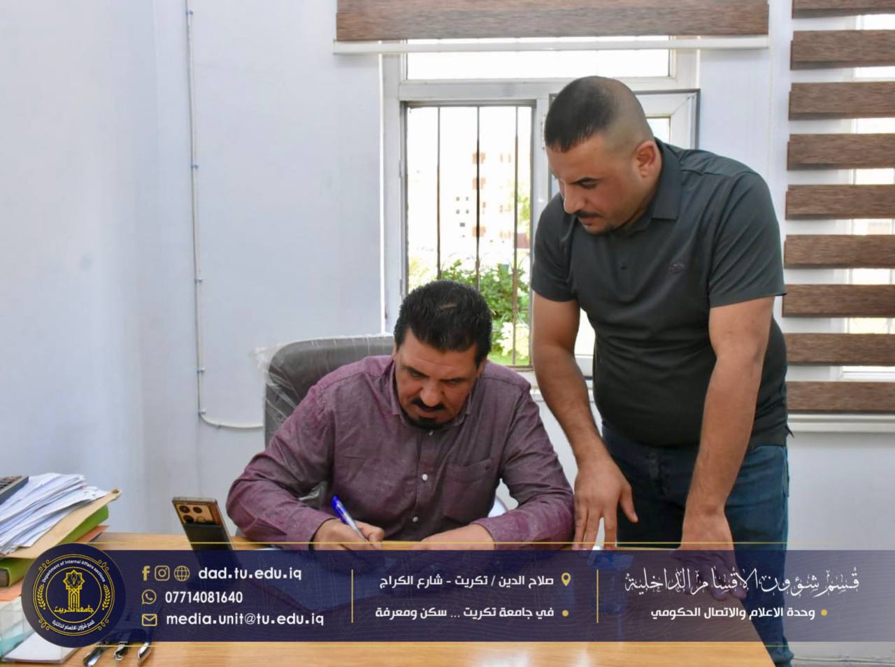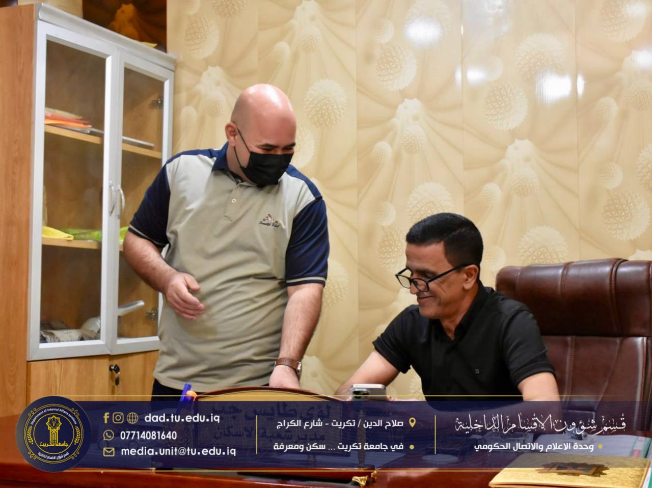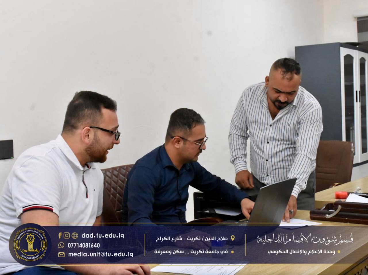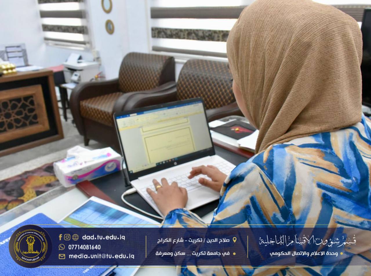 ضمن إطار المتابعة الميدانية المستمرة لسير العمل الإداري، تابع مدير قسم شؤون الأقسام الداخلية في جامعة تكريت الأستاذ الدكتور جاسم عباس علي أعمال الشعب والوحدات الإدارية في القسم، واطلع على آلية إنجاز الكتب الرسمية وتنظيم الأرشفة الورقية والإلكترونية، فضلاً عن متابعة الإحتياجات والمشاكل المتعلقة بالطلبة.