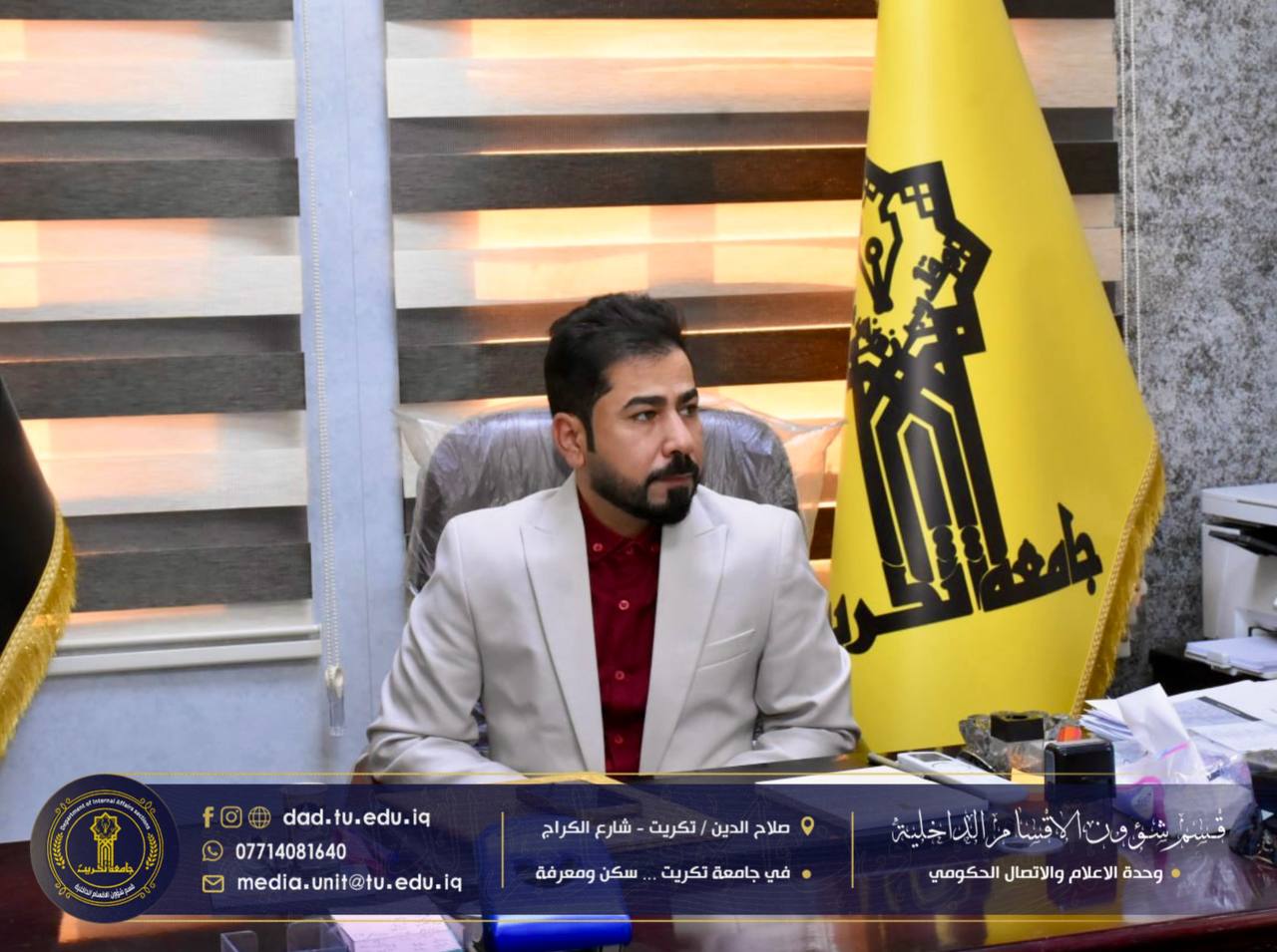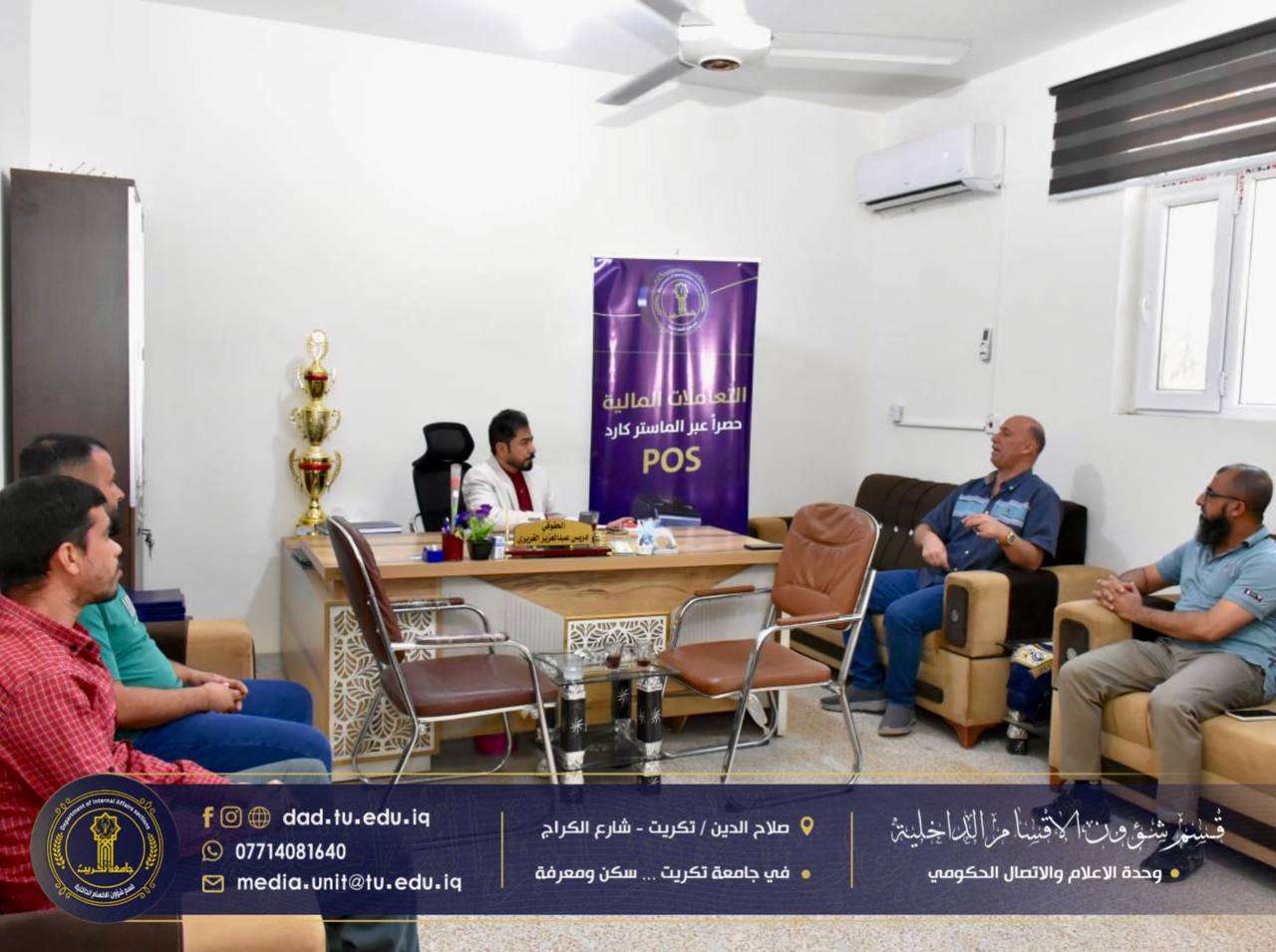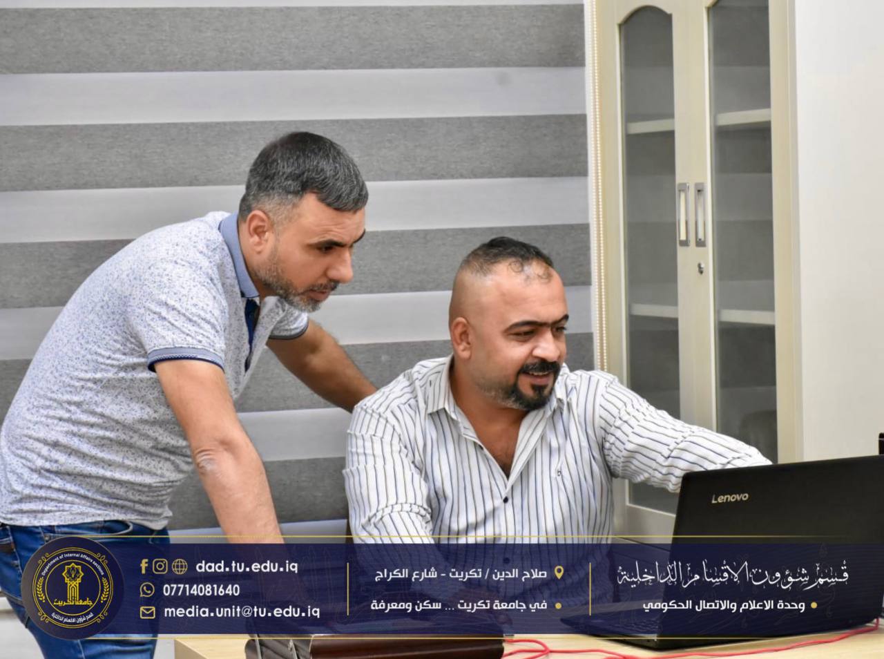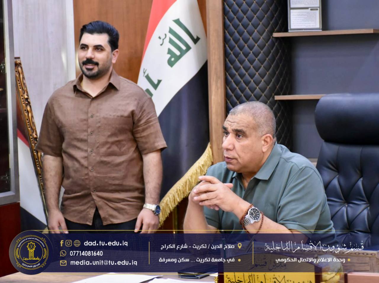 ضمن إطار المتابعة الميدانية المستمرة لسير العمل الإداري، تابع مدير قسم شؤون الأقسام الداخلية في جامعة تكريت الأستاذ الدكتور جاسم عباس علي أعمال الشعب والوحدات الإدارية في القسم، واطلع على آلية إنجاز الكتب الرسمية وتنظيم الأرشفة الورقية والإلكترونية، فضلاً عن متابعة الإحتياجات والمشاكل المتعلقة بالطلبة.