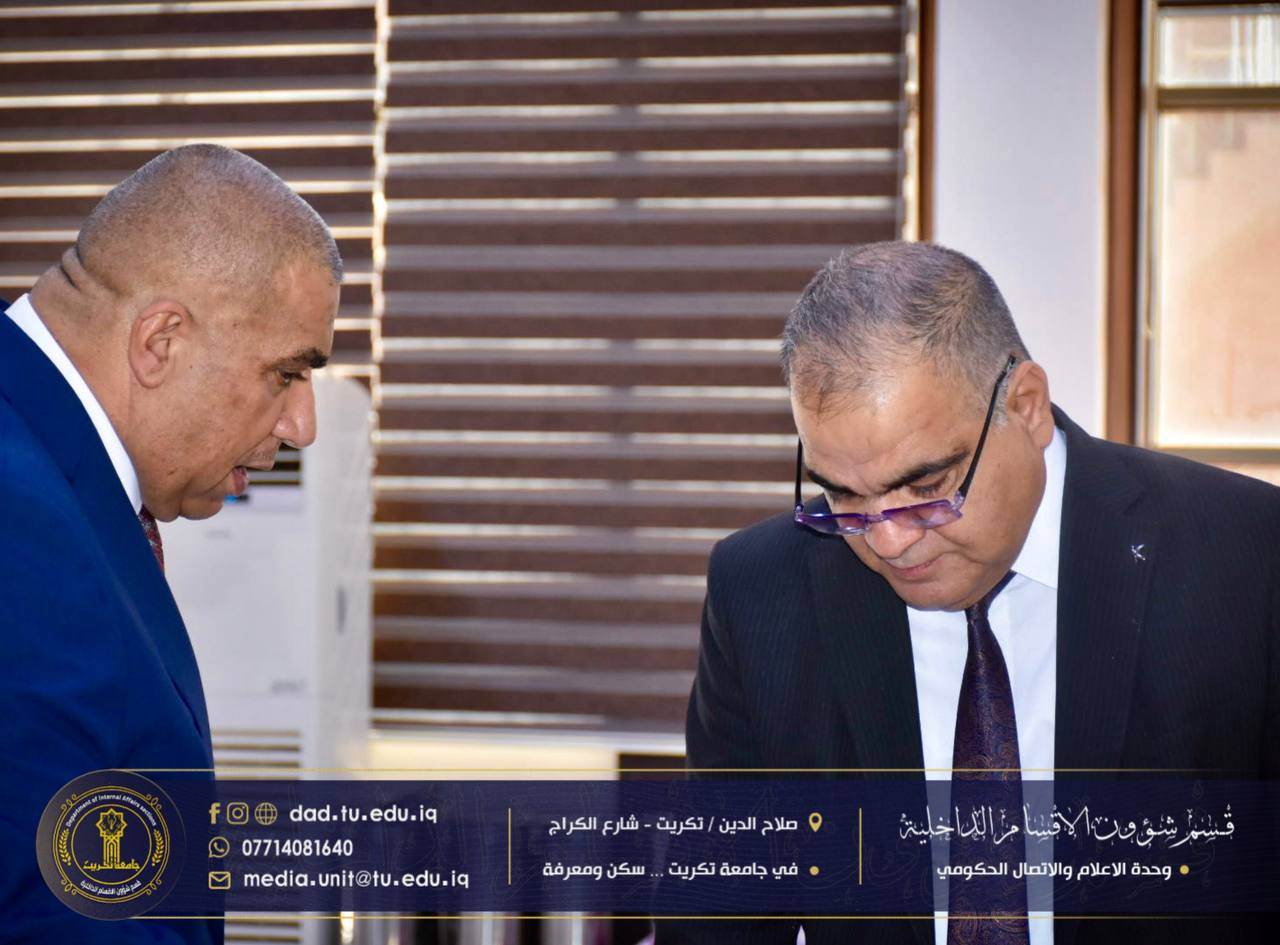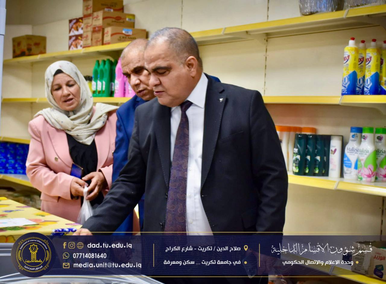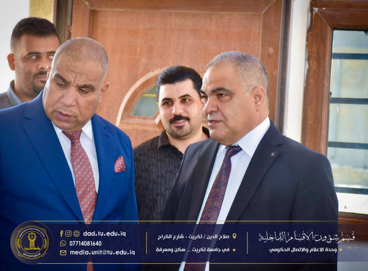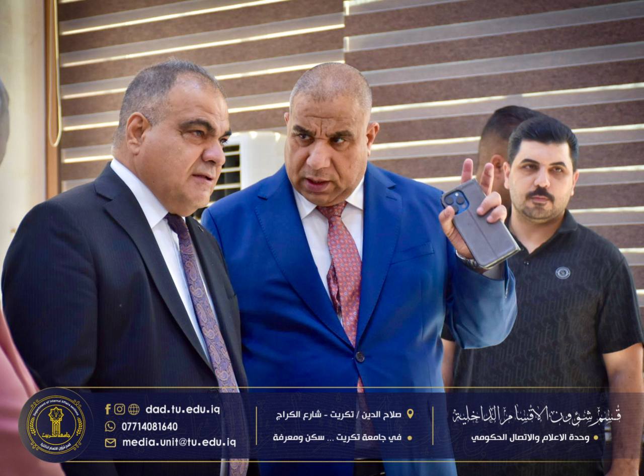 قام الأستاذ الدكتور حسن حسين إبراهيم، مساعد رئيس جامعة تكريت للشؤون العلمية، بجولة تفقدية في مجمع الطالبات النموذجي، برفقة الأستاذ الدكتور جاسم عباس علي مدير الأقسام الداخلية، وذلك لمتابعة سير إجراءات تسجيل الطالبات الجدد والوقوف على انسيابية العمل داخل المجمع.