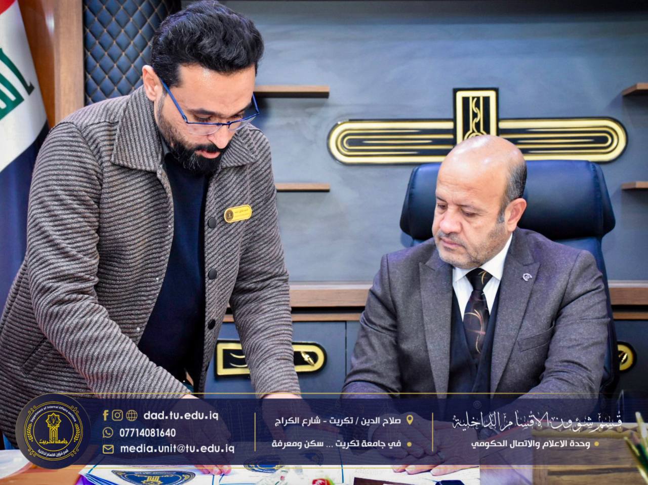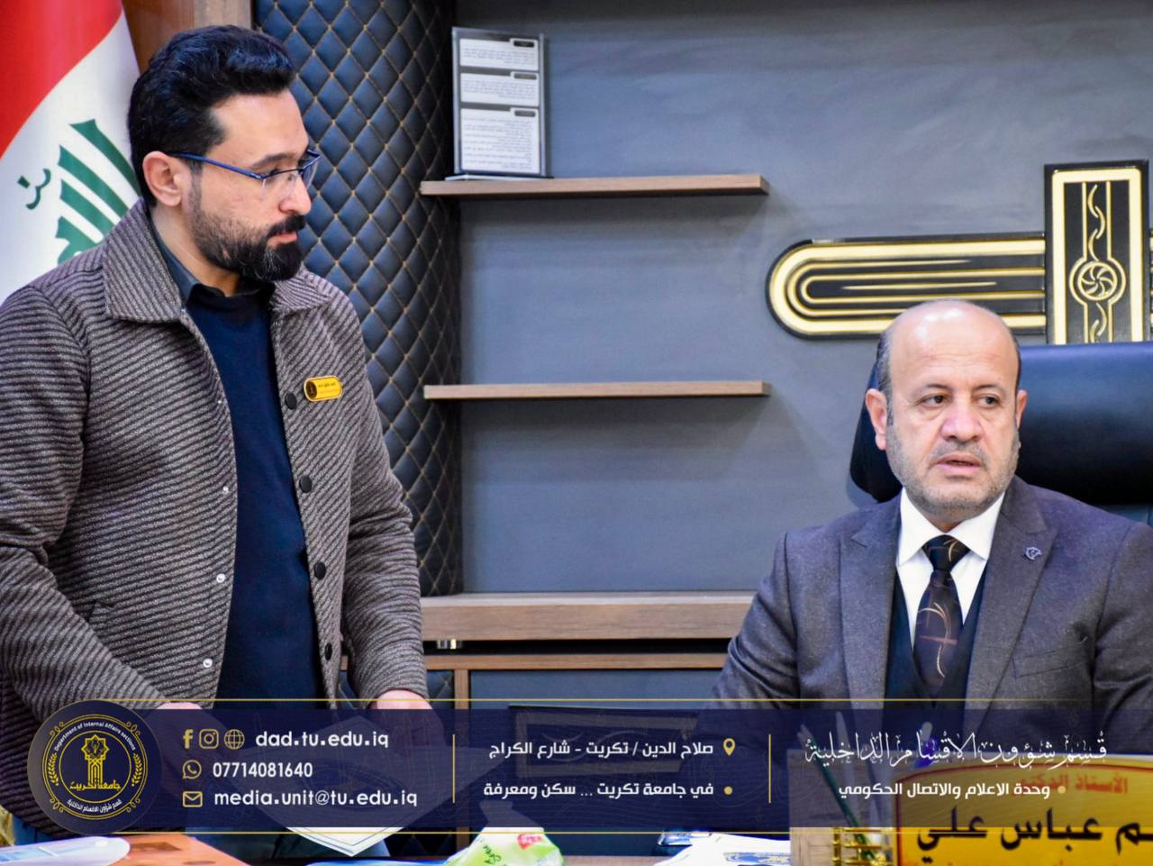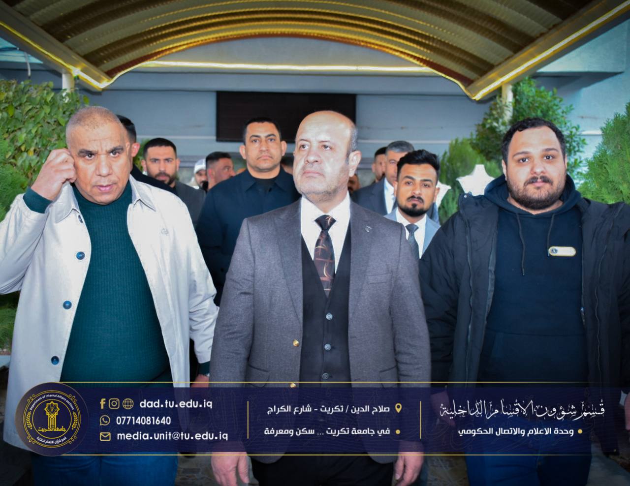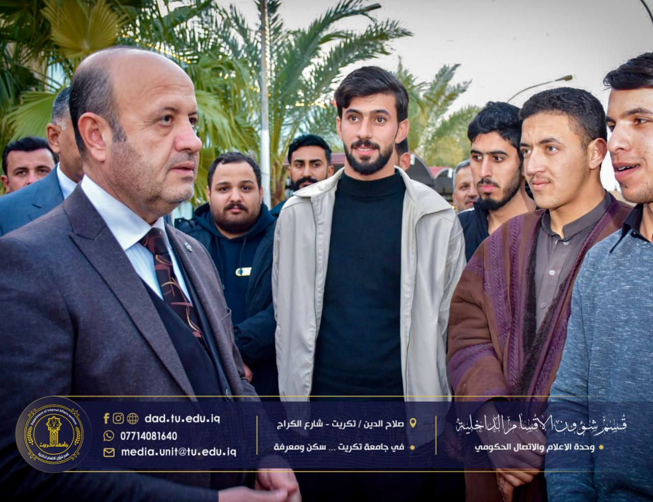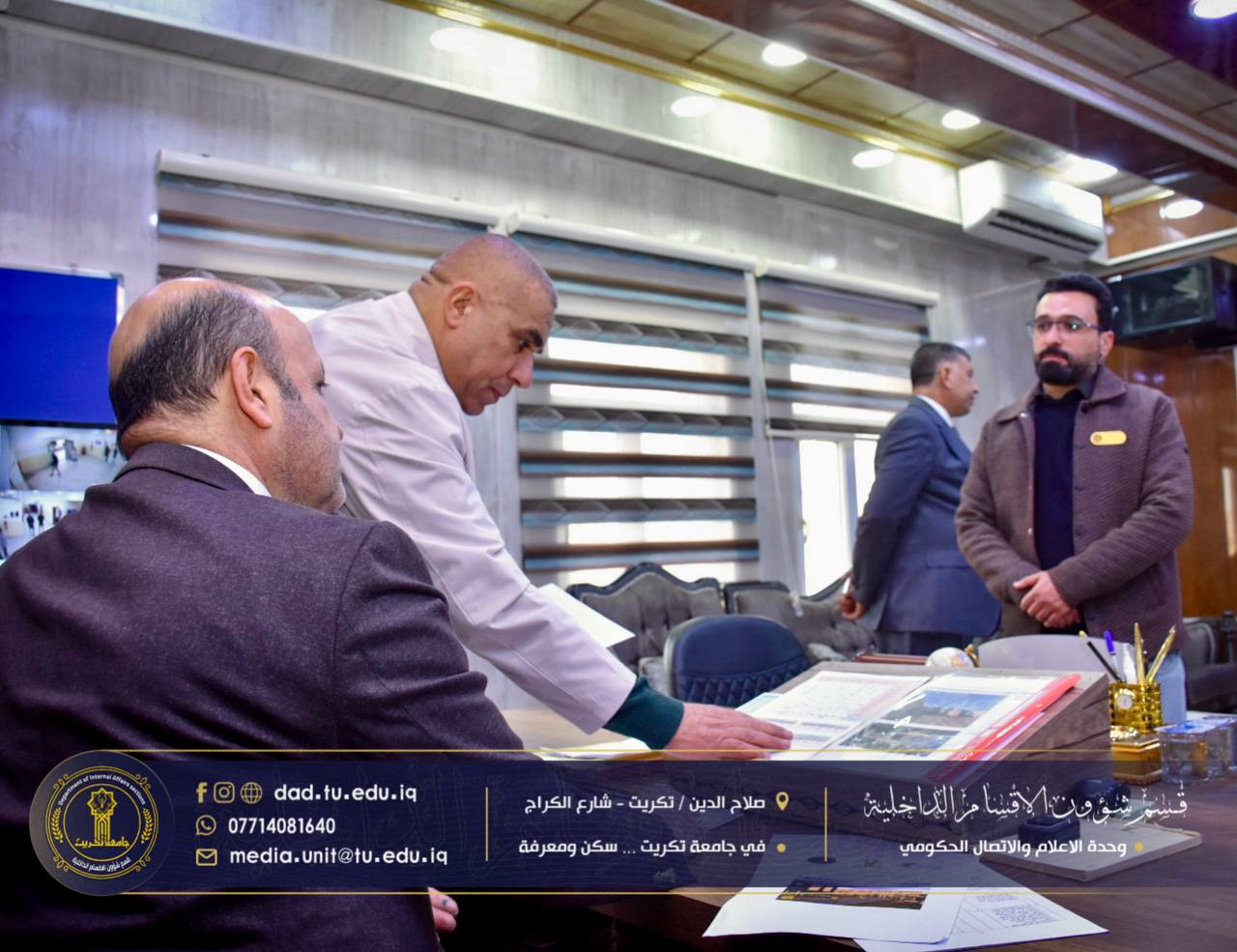أجرى رئيس جامعة تكريت الأستاذ الدكتور وعد محمود رؤوف المحترم زيارة إلى مقر قسم شؤون الأقسام الداخلية، يرافقه المساعد الإداري الأستاذ الدكتور حامد محمد صالح، وكان في استقبالهم الأستاذ الدكتور جاسم عباس علي مدير قسم شؤون الأقسام الداخلية، إلى جانب الكادر المتقدم في القسم من مسؤولي الشعب والوحدات.