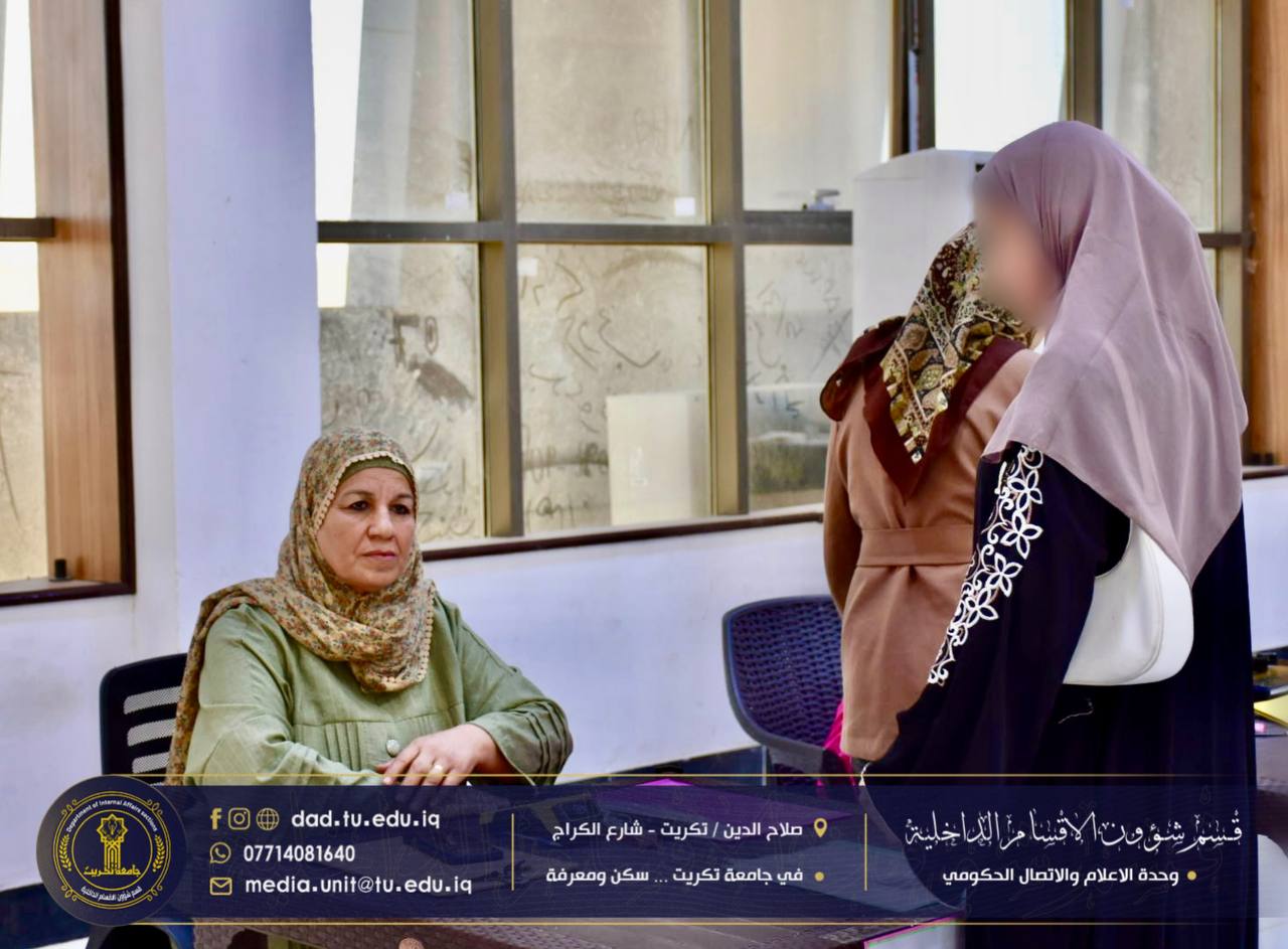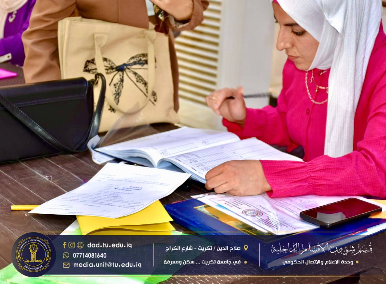 تنفيذاً لتوجيهات رئاسة جامعة تكريت وحرصاً على انسيابية عملية إسكان الطالبات، يواصل قسم شؤون الأقسام الداخلية متابعة إجراءات التسجيل في مجمع الطالبات النموذجي بإشراف مباشر من الكوادر الإدارية المختصة.