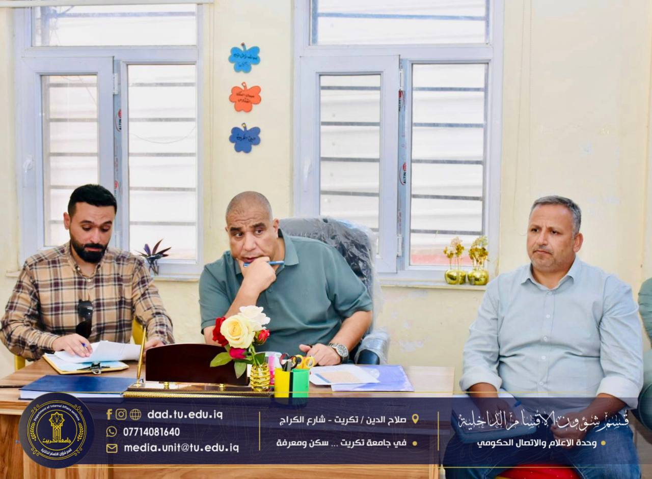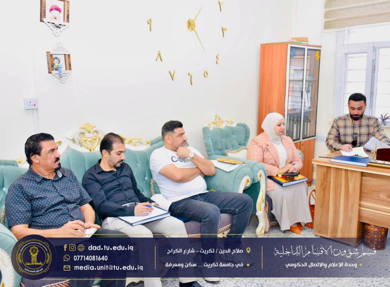 برئاسة مدير قسم شؤون الأقسام الداخلية أ.د. جاسم عباس علي، عقدت لجنة الاعتماد المؤسسي في القسم اجتماعها مساء اليوم بحضور السادة مديري الشعب وأمناء المجمعات وأعضاء اللجنة المكلفين.
