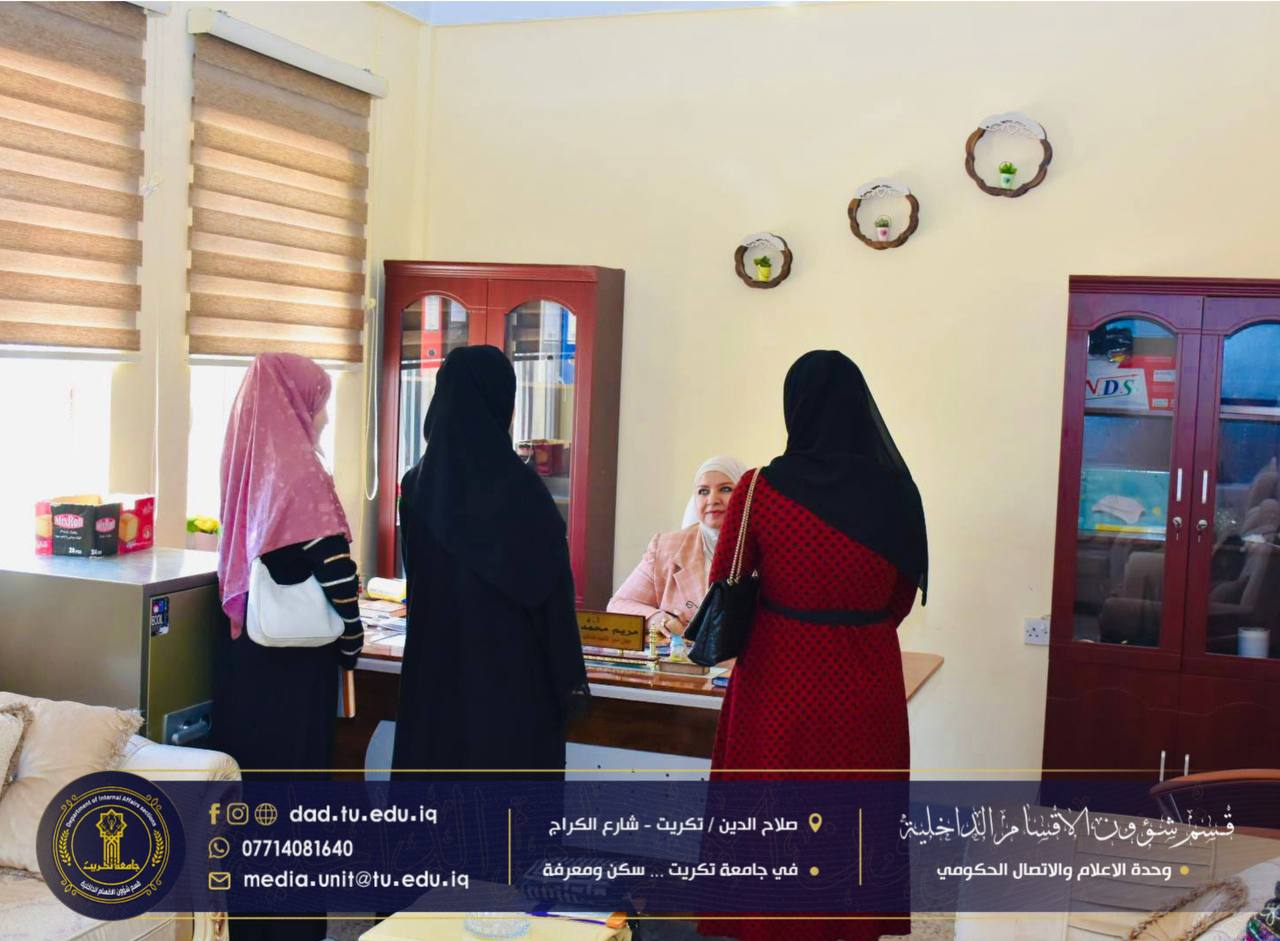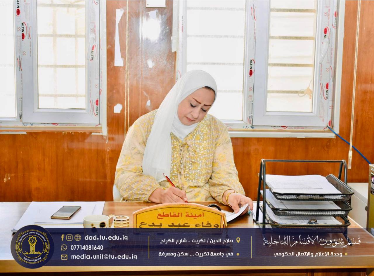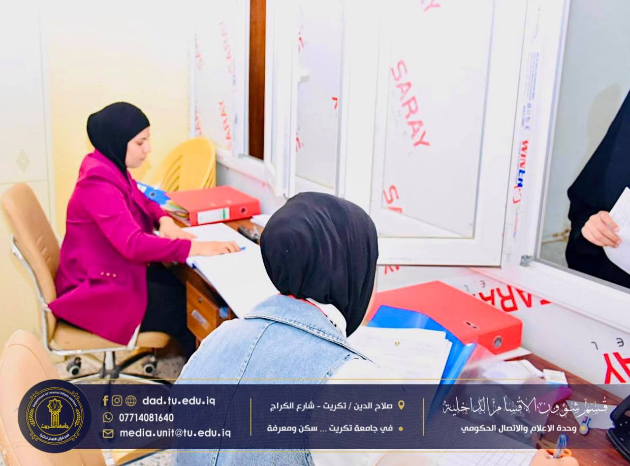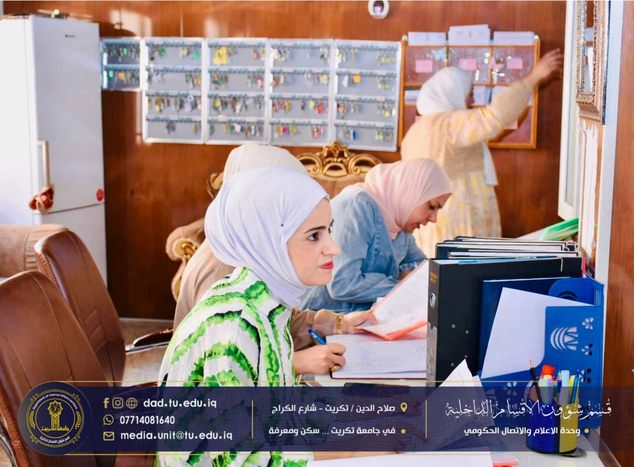 بمتابعة مباشرة من الأستاذ الدكتور جاسم عباس علي مدير قسم شؤون الأقسام الداخلية في جامعة تكريت، تواصل الكوادر الإدارية في مجمع الطالبات المركزي أعمالها في استقبال وتسجيل الطالبات للسكن في الأقسام الداخلية للعام الدراسي الجديد، وفق التعليمات والضوابط المعتمدة من قبل الوزارة والجامعة.