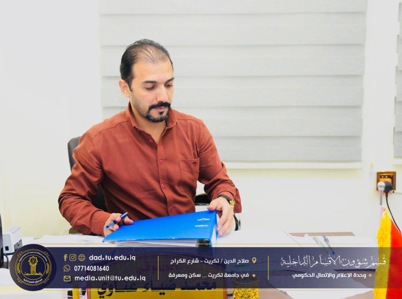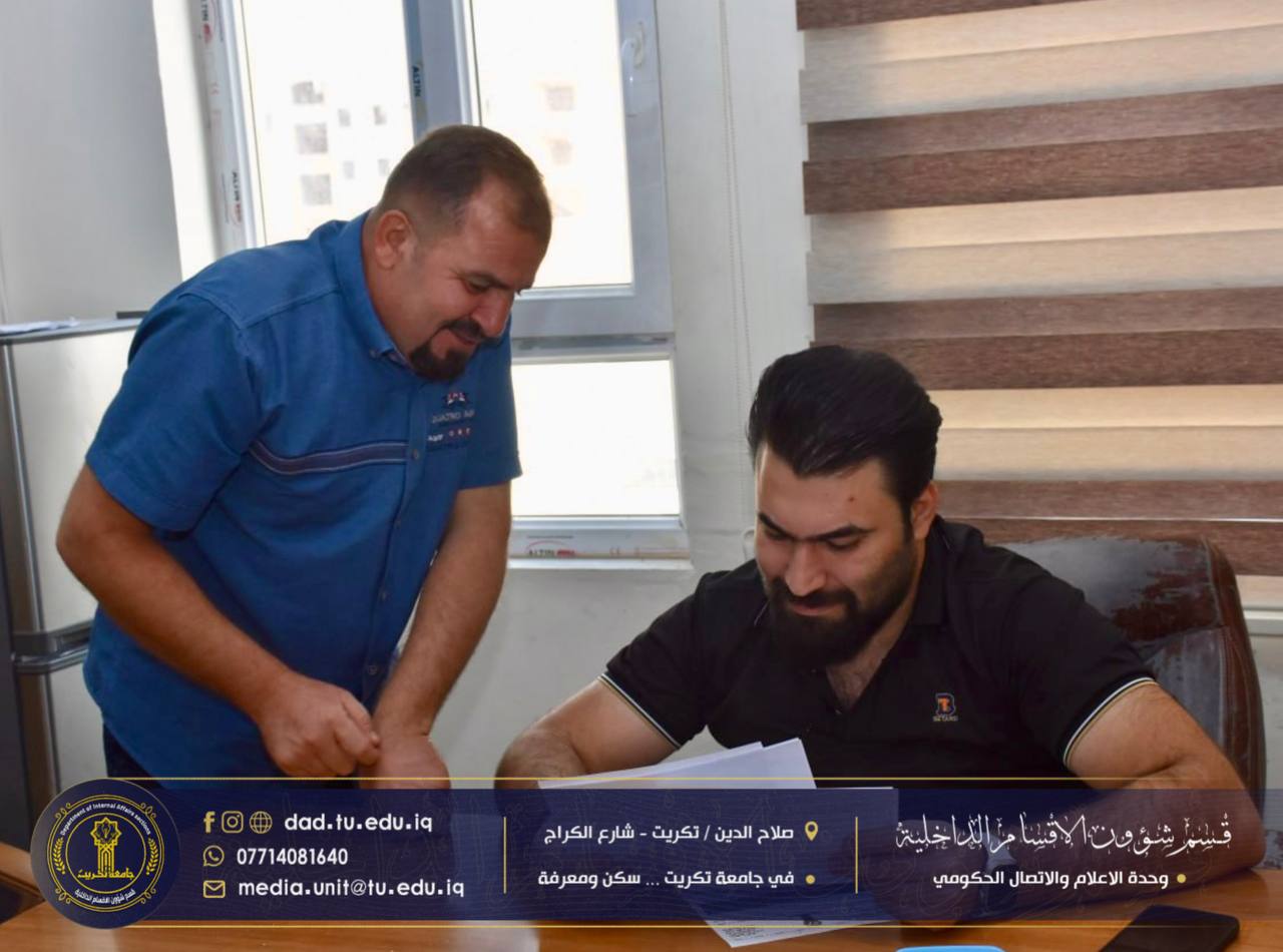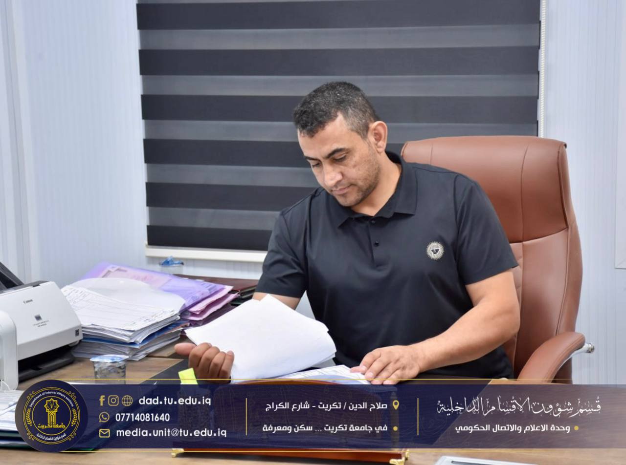 أجرى كادر الاعلام والإتصال الحكومي جولةً إداريةً شملت عدداً من الشعب والوحدات في القسم، للاطلاع على سير العمل ومتابعة الواقع الإداري والخدمي فيها، بهدف الارتقاء بمستوى الأداء وضمان انسيابية الإجراءات بما يخدم الطلبة والمنتسبين.