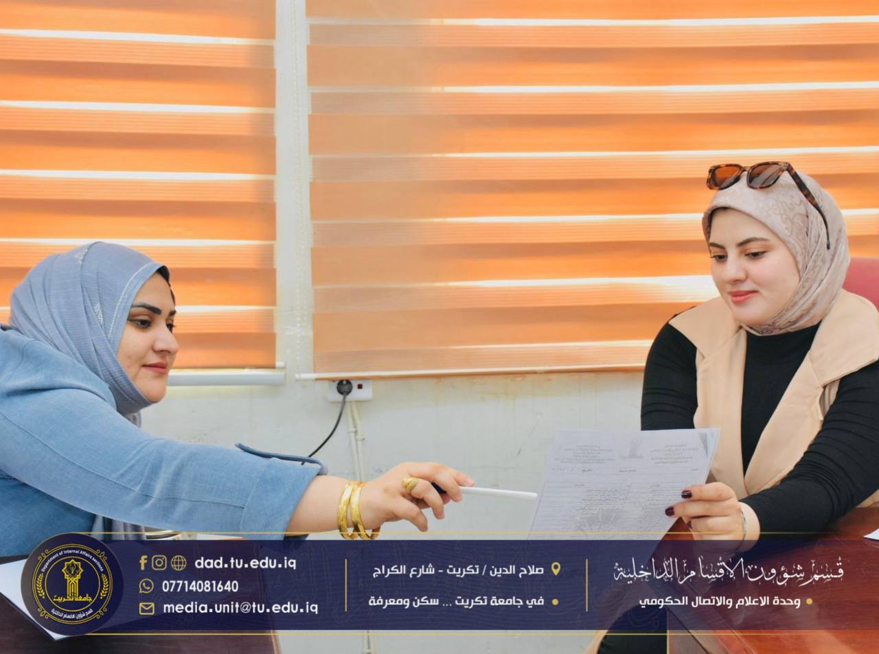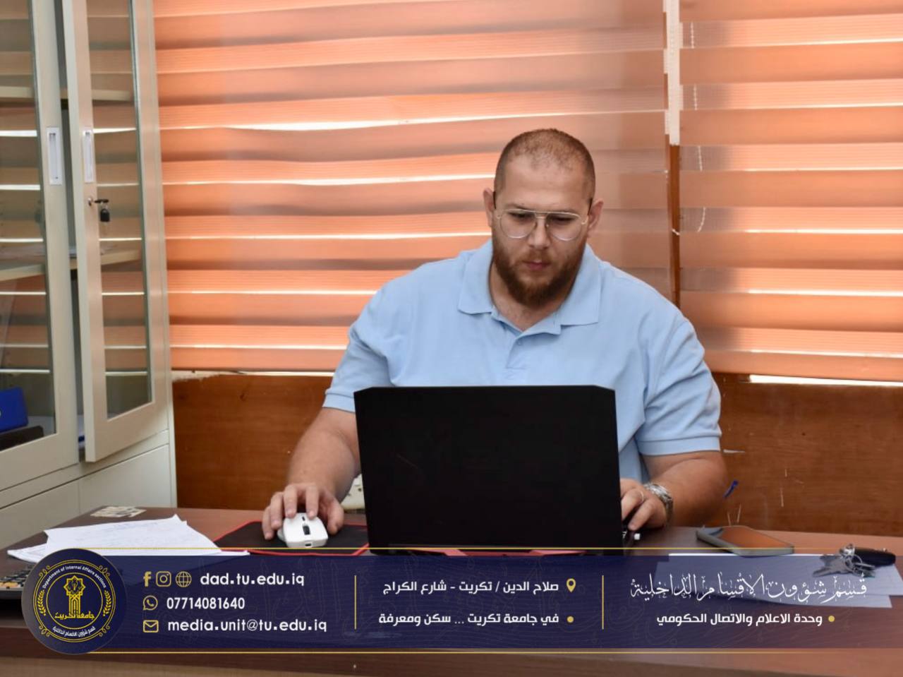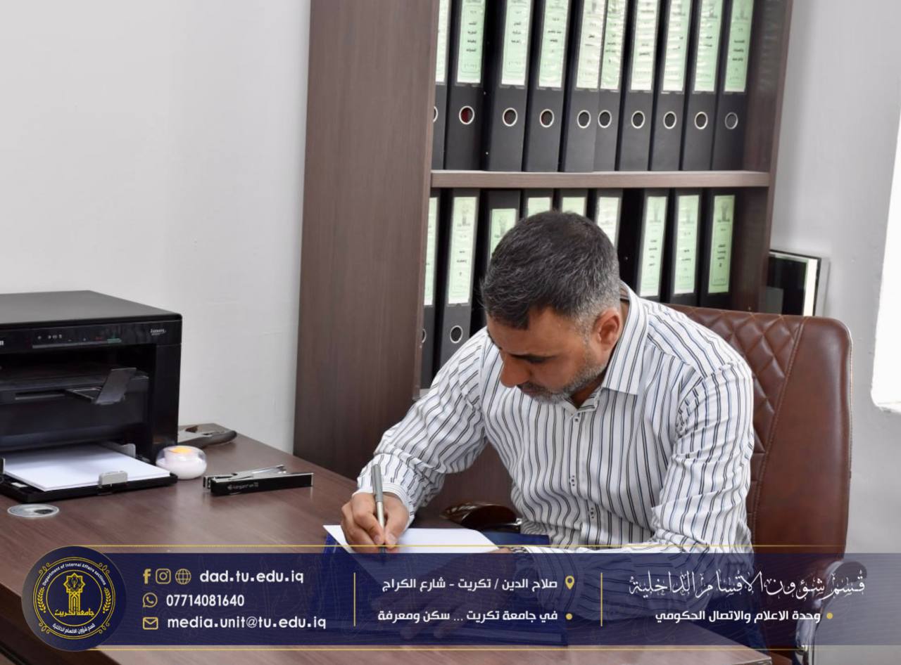 أجرى كادر الاعلام والإتصال الحكومي جولةً إداريةً شملت عدداً من الشعب والوحدات في القسم، للاطلاع على سير العمل ومتابعة الواقع الإداري والخدمي فيها، بهدف الارتقاء بمستوى الأداء وضمان انسيابية الإجراءات بما يخدم الطلبة والمنتسبين.