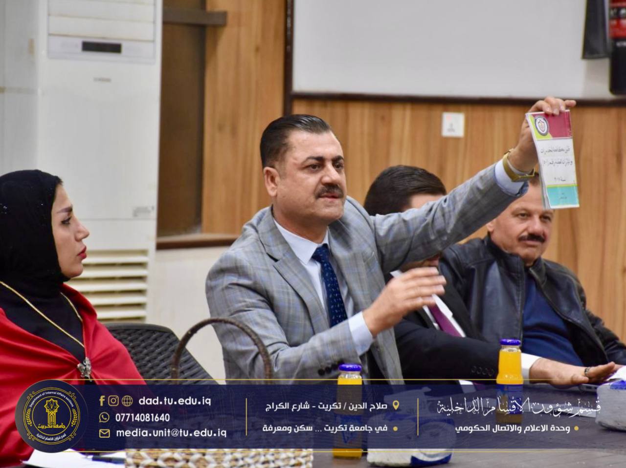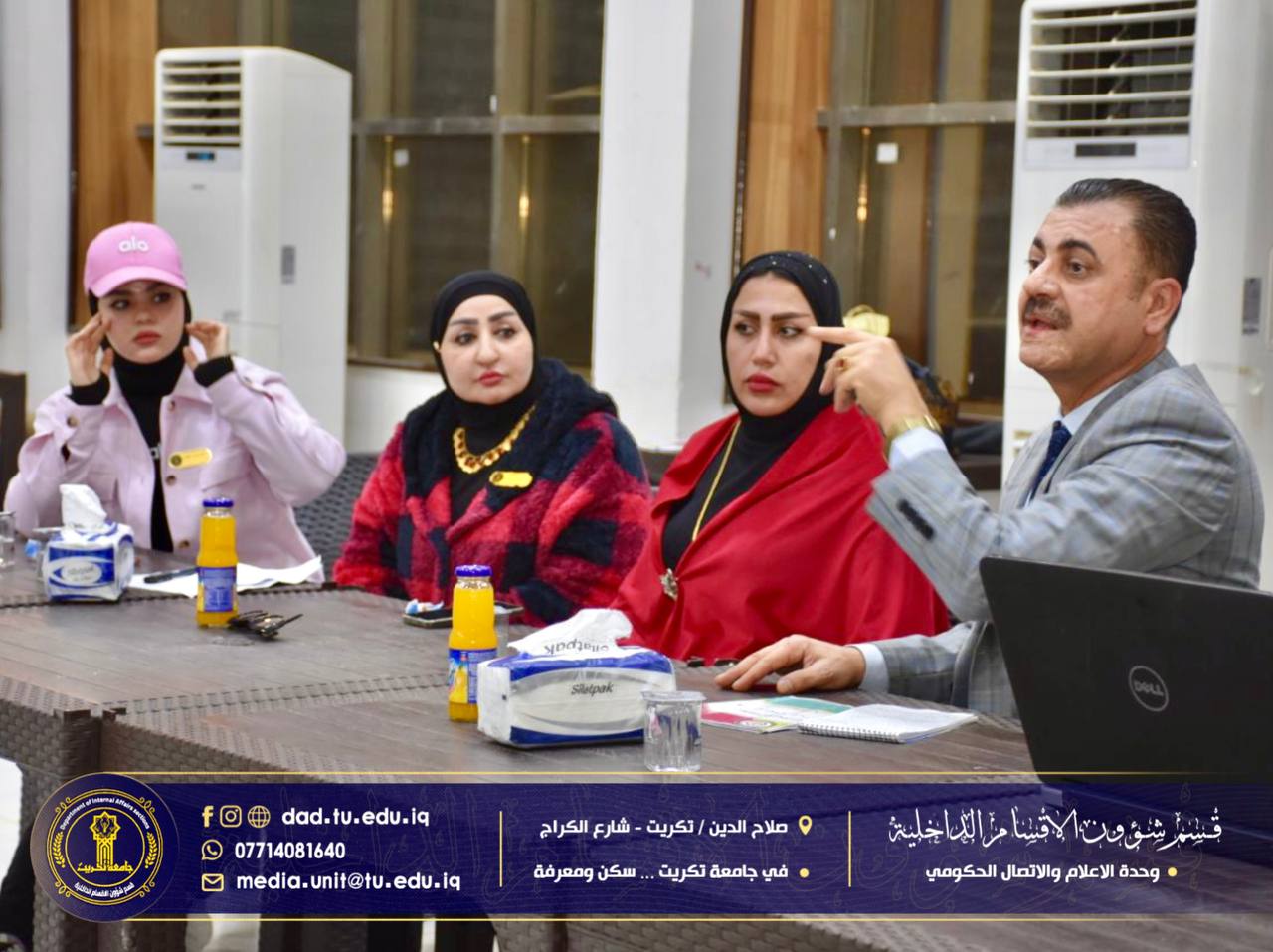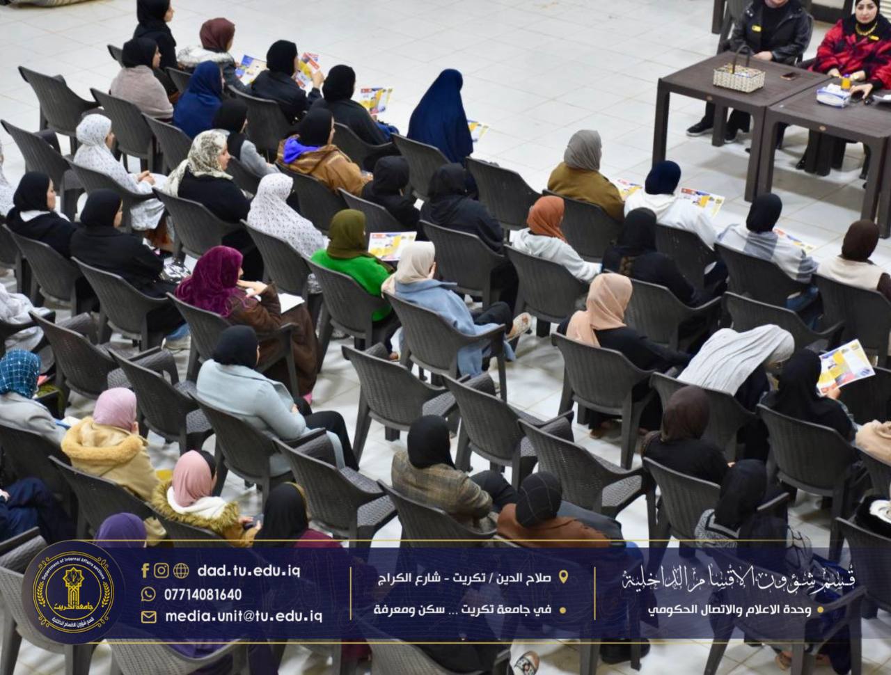 برعاية رئيس جامعة تكريت الأستاذ الدكتور وعد محمود رؤوف المحترم، وبإشراف مدير قسم شؤون الأقسام الداخلية الأستاذ الدكتور جاسم عباس علي المحترم، اختتمت شعبة البحث الاجتماعي في الأقسام الداخلية دورتها التوعوية الموسومة (ظاهرة المخدرات… مفهوم الإدمان عليها، أسبابها، مضارها وآثارها السلبية)، والتي نُظمت بالتنسيق مع مديرية شؤون المخدرات في محافظة صلاح الدين وكلية التربية للعلوم الإنسانية.