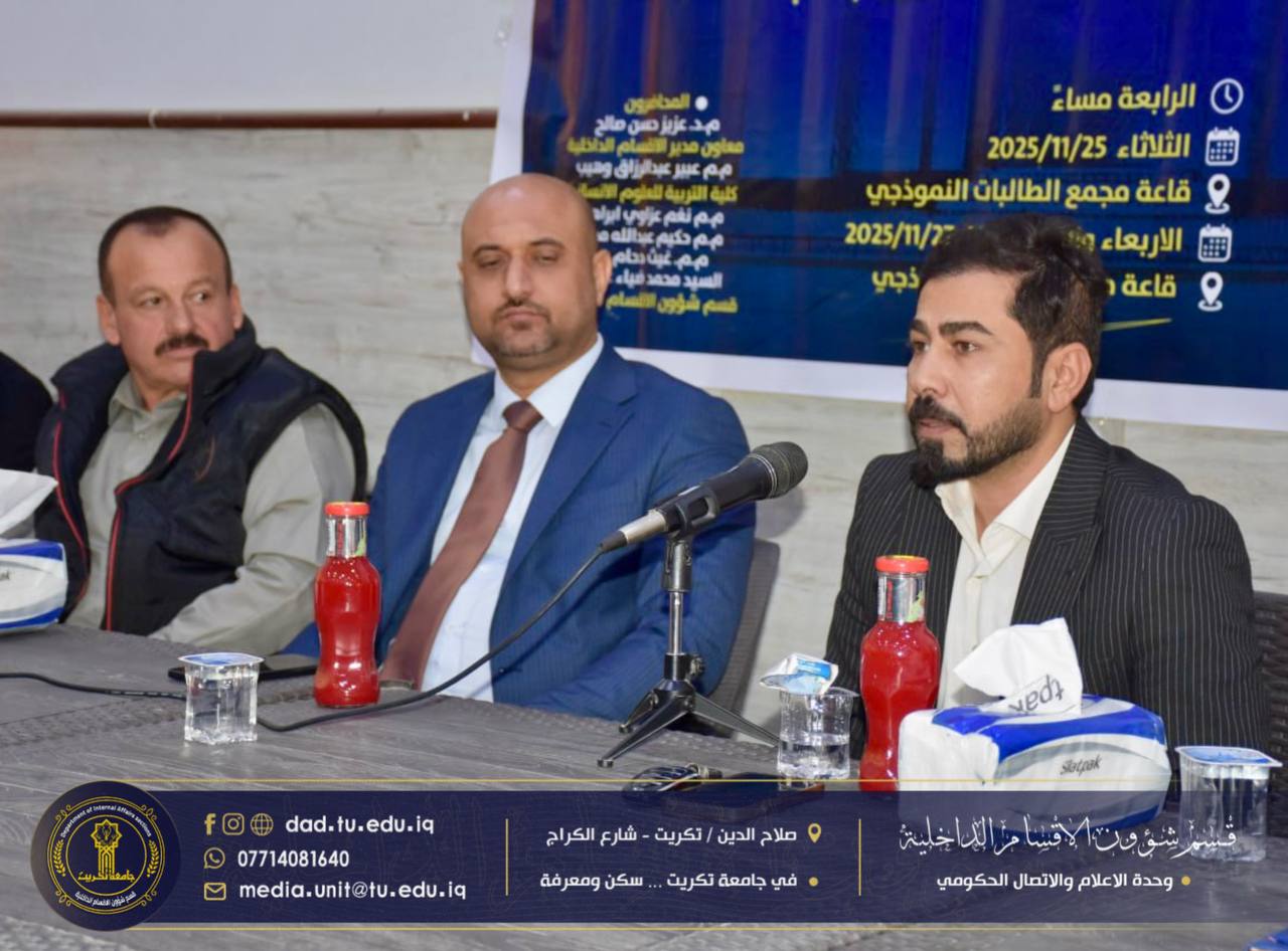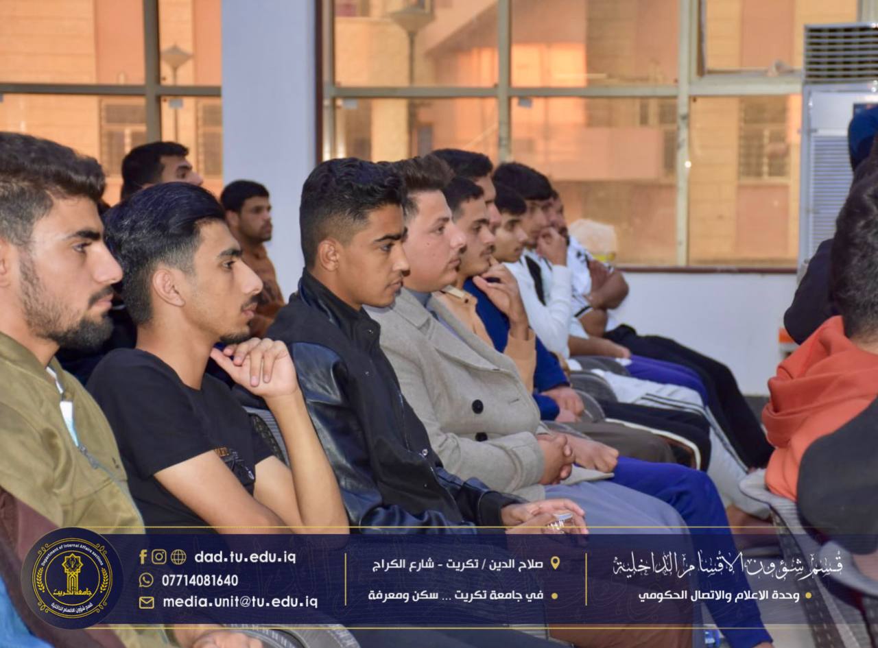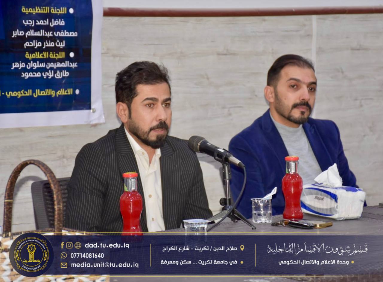 برعاية الاستاذ الدكتور وعد محمود رؤوف رئيس جامعة تكريت المحترم، وبإشراف الاستاذ الدكتور جاسم عباس علي مدير قسم شؤون الاقسام الداخلية المحترم، اختتمت شعبة البحث الاجتماعي في الأقسام الداخلية بجامعة تكريت،دورتها الموسومة “آليات الترحيب بالطلبة والتعليمات الخاصة بالسكن”، والتي استمرت لمدة ثلاثة أيام على قاعة مجمع الطلاب النموذجي.