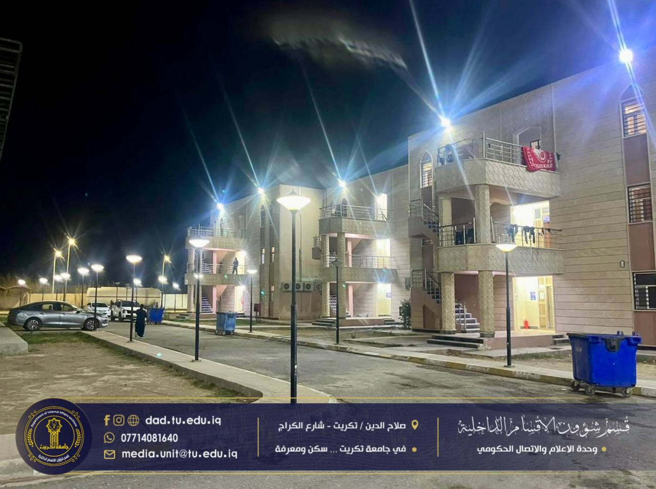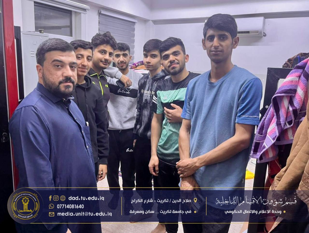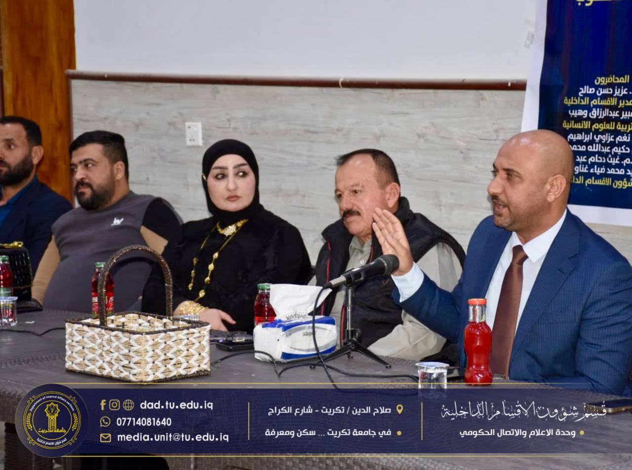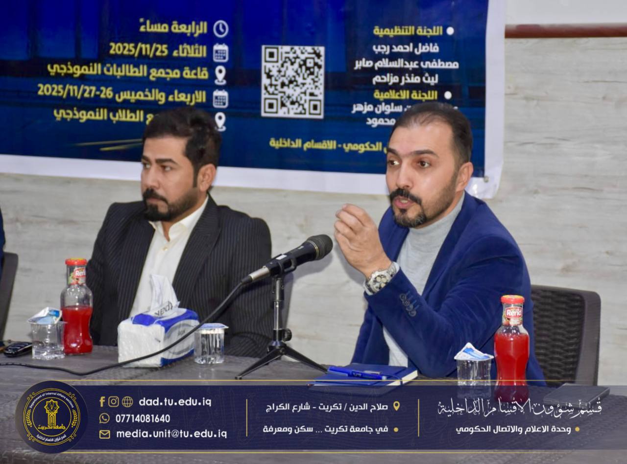 برعاية الاستاذ الدكتور وعد محمود رؤوف رئيس جامعة تكريت المحترم، وبإشراف الاستاذ الدكتور جاسم عباس علي مدير قسم شؤون الاقسام الداخلية المحترم، اختتمت شعبة البحث الاجتماعي في الأقسام الداخلية بجامعة تكريت،دورتها الموسومة “آليات الترحيب بالطلبة والتعليمات الخاصة بالسكن”، والتي استمرت لمدة ثلاثة أيام على قاعة مجمع الطلاب النموذجي.