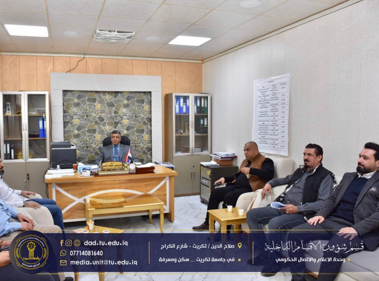 ضمن خطة المتابعة الميدانية المستمرة للارتقاء بواقع السكن الجامعي، أجرى الأستاذ الدكتور جاسم عباس علي مدير قسم شؤون الأقسام الداخلية في جامعة تكريت زيارة رسمية إلى كلية الطب، التقى خلالها عميد الكلية الاستاذ الدكتور وسام سهيل نجم والمعاون الإداري الاستاذ الدكتور إدريس خلف ثامر، حيث جرى بحث التعاون المشترك وسبل دعم الطلبة الساكنين وتوفير بيئة دراسية ملائمة داخل المجمعات السكنية.