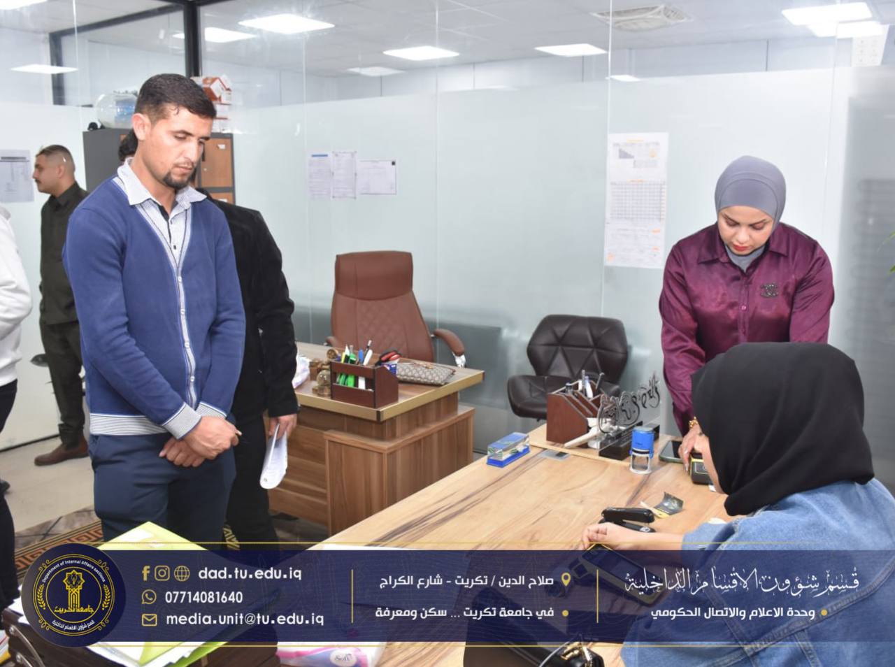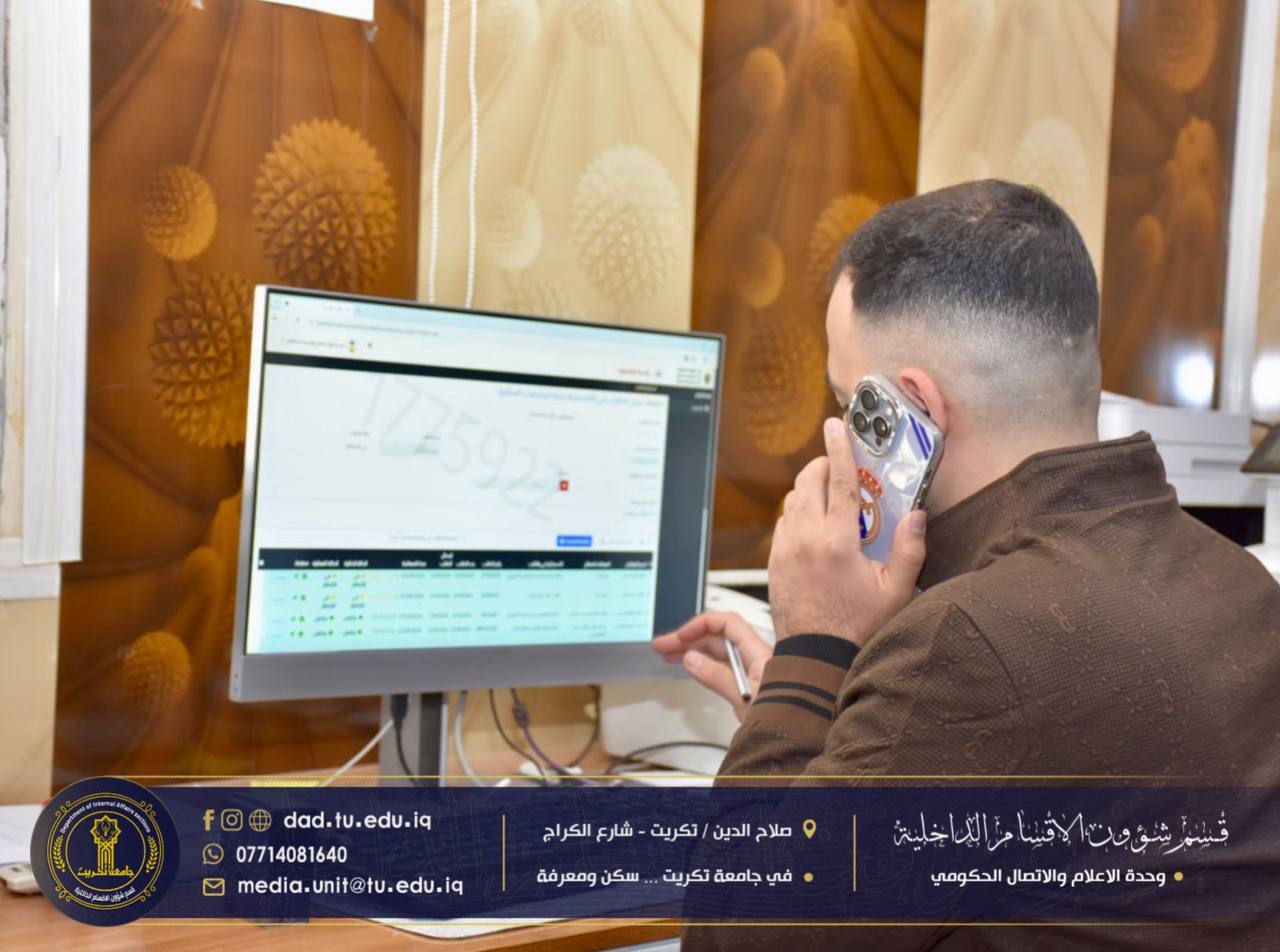 ضمن إطار المتابعة المستمرة لسير العمل الإداري والوقوف على احتياجات الشعب والوحدات، أجرى الإعلام والاتصال الحكومي اليوم جولة ميدانية شملت عدداً من الشعب والوحدات الإدارية في القسم، بهدف الاطلاع على الخدمات المقدمة للطلبة.